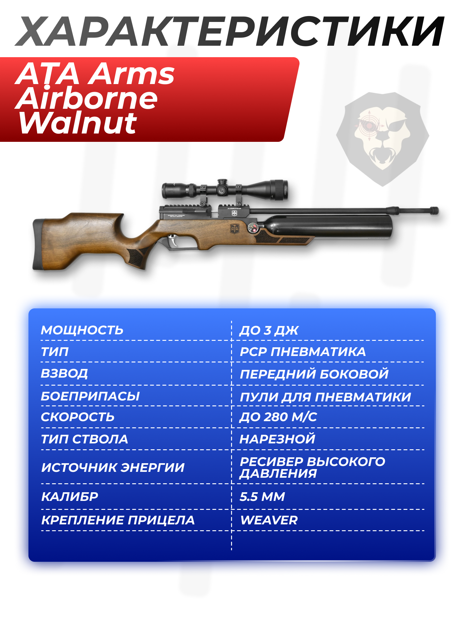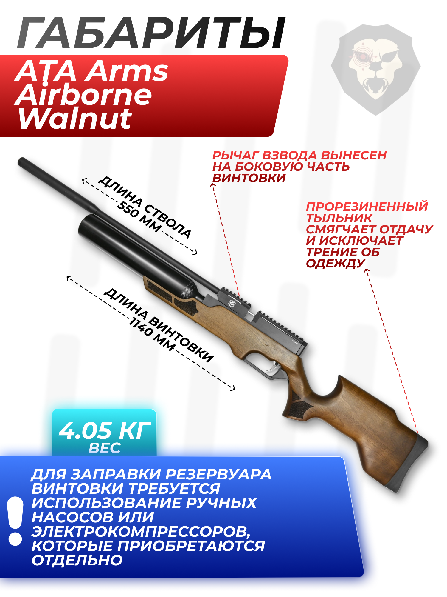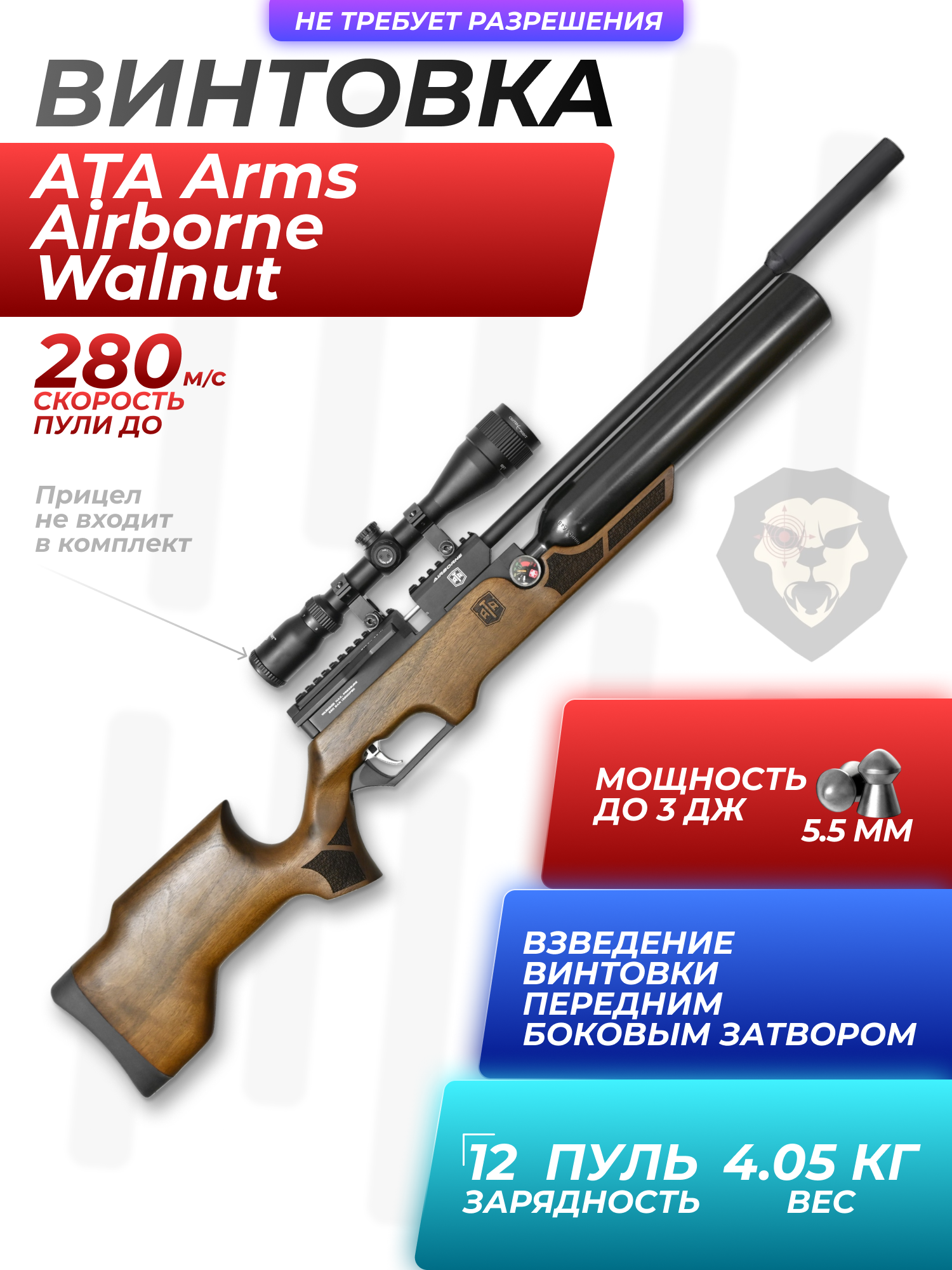 Пневматическая винтовка ATA Arms Airborne Walnut 5.5 мм (колба, 550 мм) купить в интернет-магазине Popadiv10.