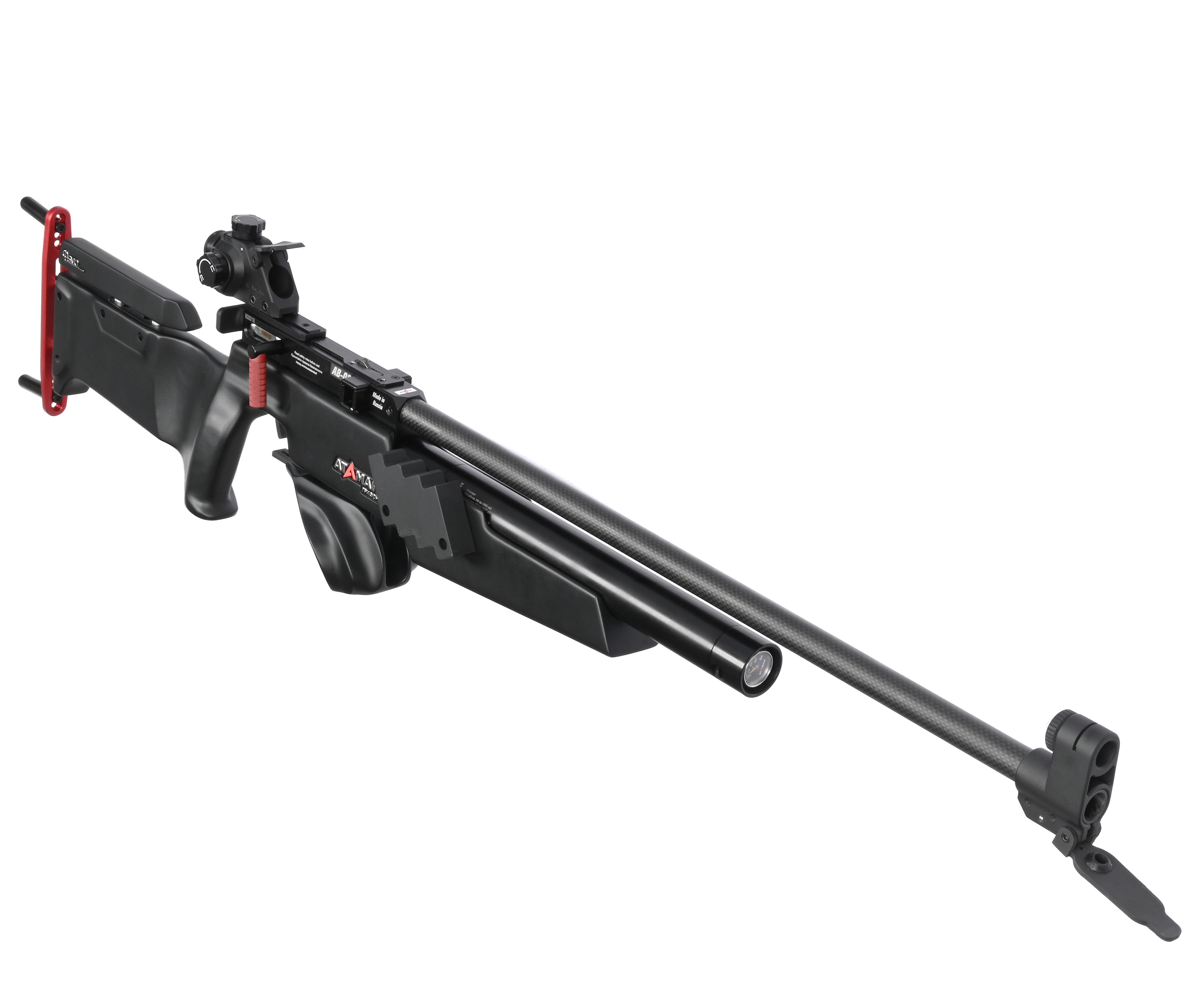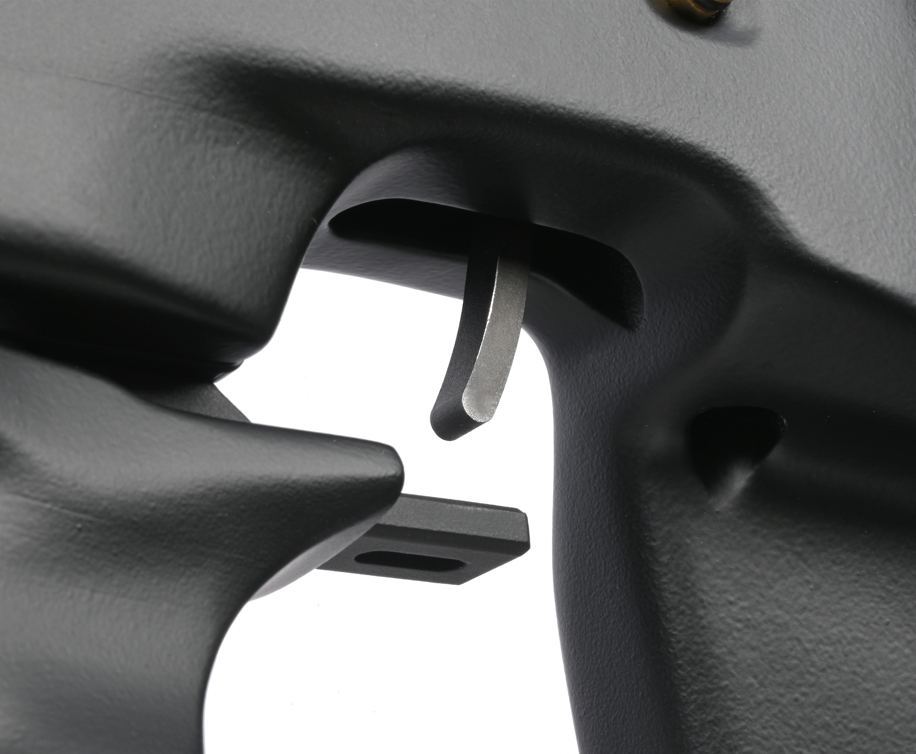 Ложе за счет своей формы обеспечивает анатомически корректное расположение кисти при удержании, причем дополнительный упор служит для стабилизации оружия при спортивном хвате второй рукой. Приклад оснащен настраиваемым по высоте подщечником, что гарантирует комфортную вкладку в прицел. Устранить скольжение и плотно зафиксировать плечевой упор при наведении помогает ребристый тыльник с ограничителями.