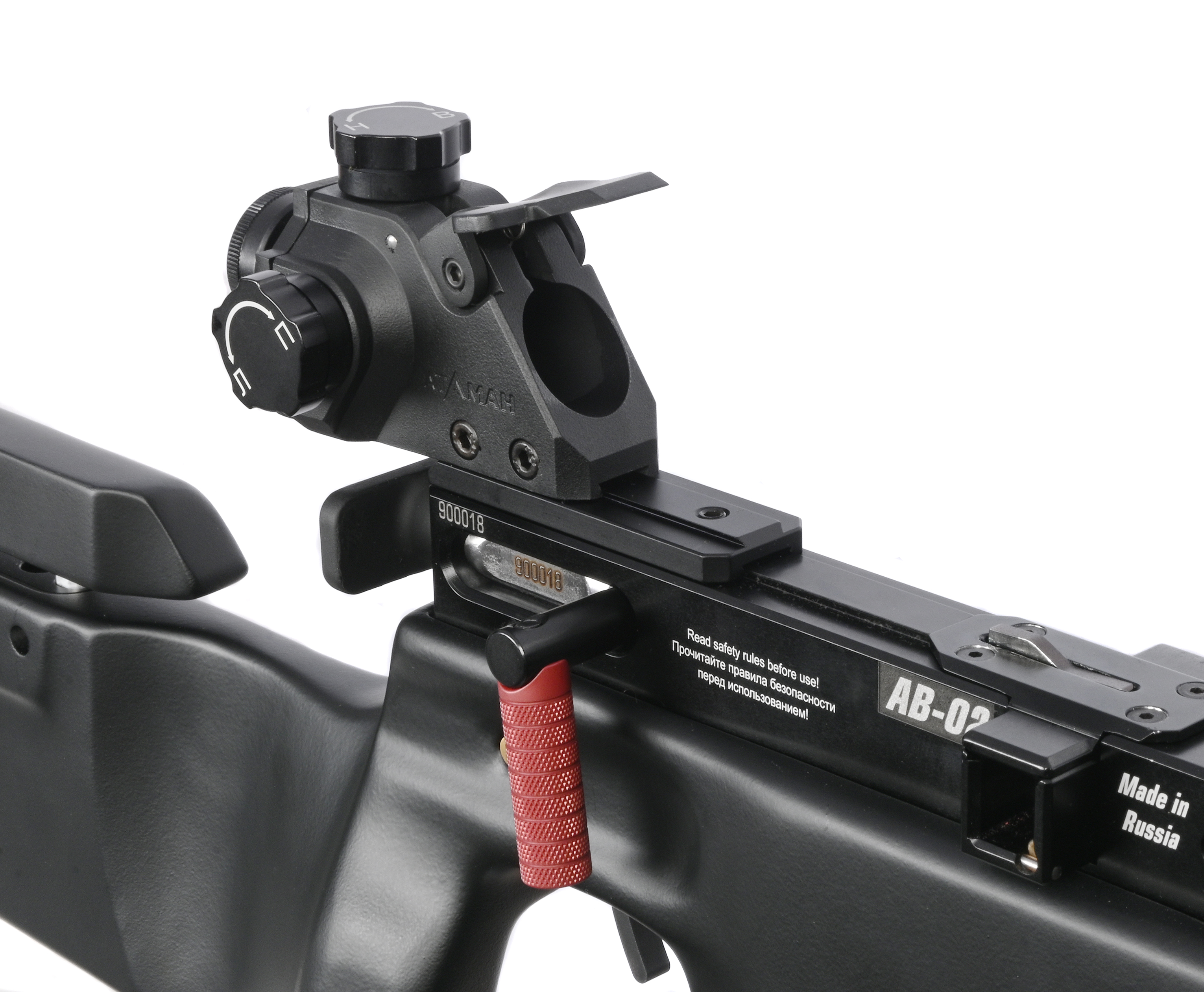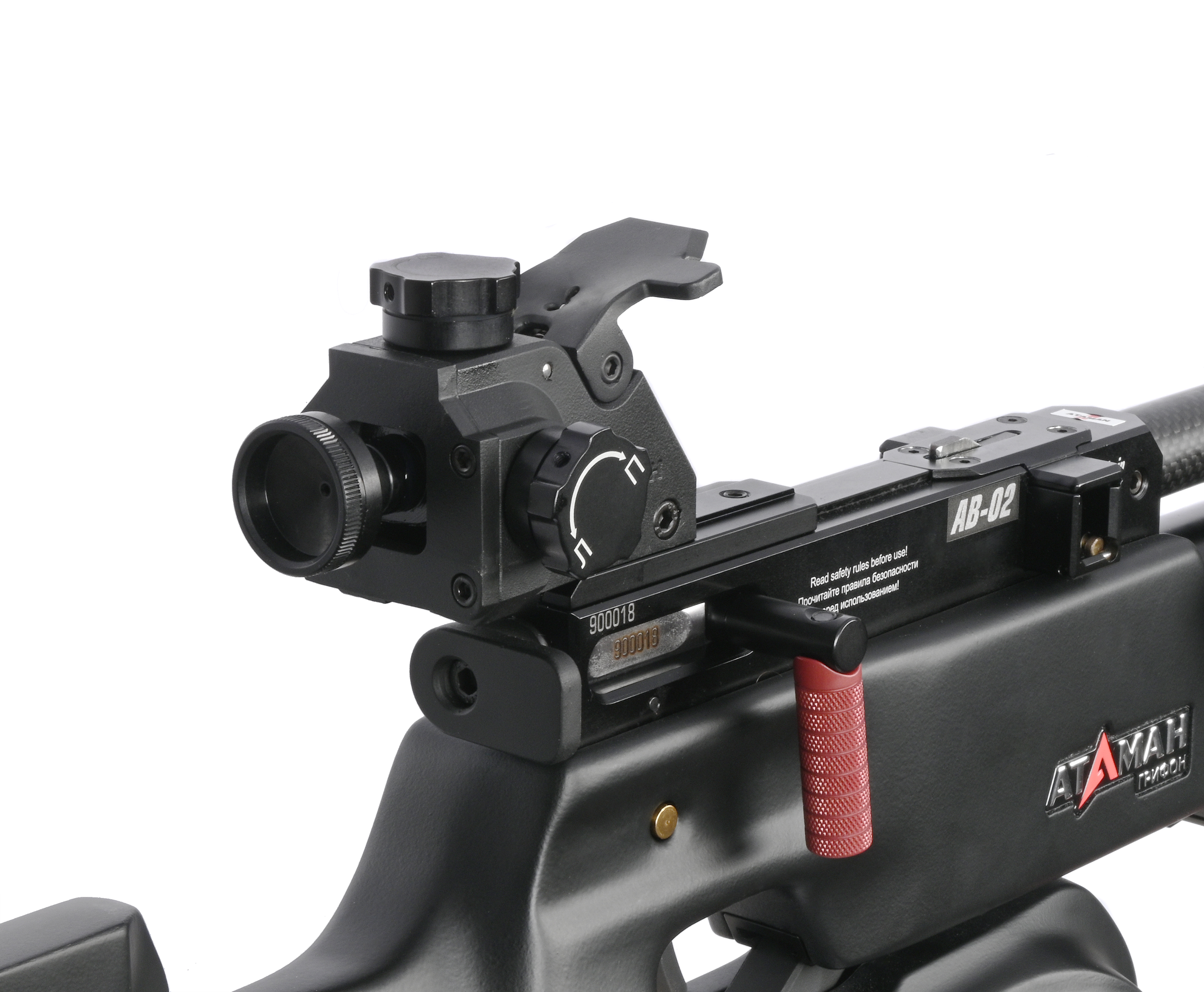 Биатлонная PCP винтовка Ataman AB-02 выполнена в калибре 4.5 мм и рассчитана на использование воланчиковых пуль. Их досылание в казенник при взведении происходит посредством клип-магазинов, вмещающих пять боеприпасов. Конструкция предполагает оперативный доступ к запасным накопителям, что существенно ускоряет перезарядку.