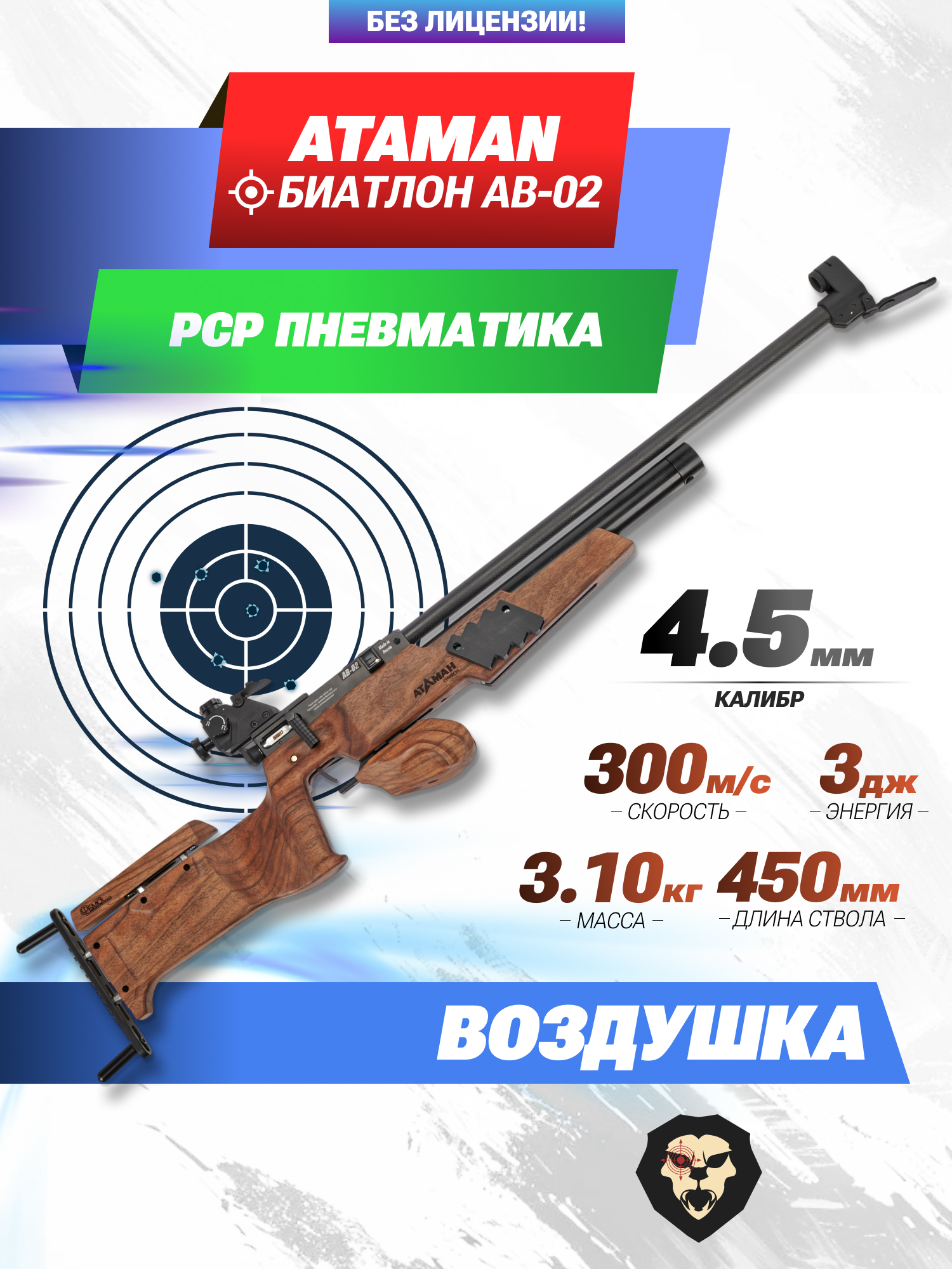 Пневматическая винтовка Ataman Биатлон АВ-02 4.5 мм (Орех) купить в интернет-магазине Popadiv10.