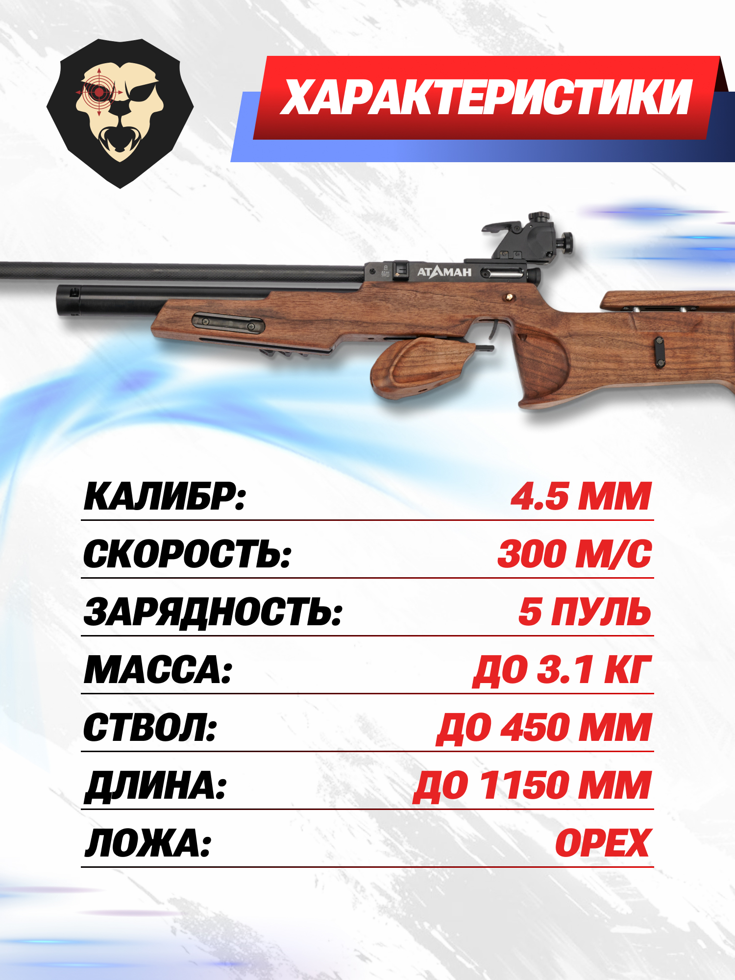Информация о товаре "Пневматическая винтовка Ataman Биатлон АВ-02 4.5 мм (Орех)" носит ознакомительный характер, и не является публичной офертой, определяемой положениями Статьи 437 Гражданского кодекса Российской Федерации, характеристики, внешний вид, цвет и комплектация могут быть изменены производителем без уведомления.