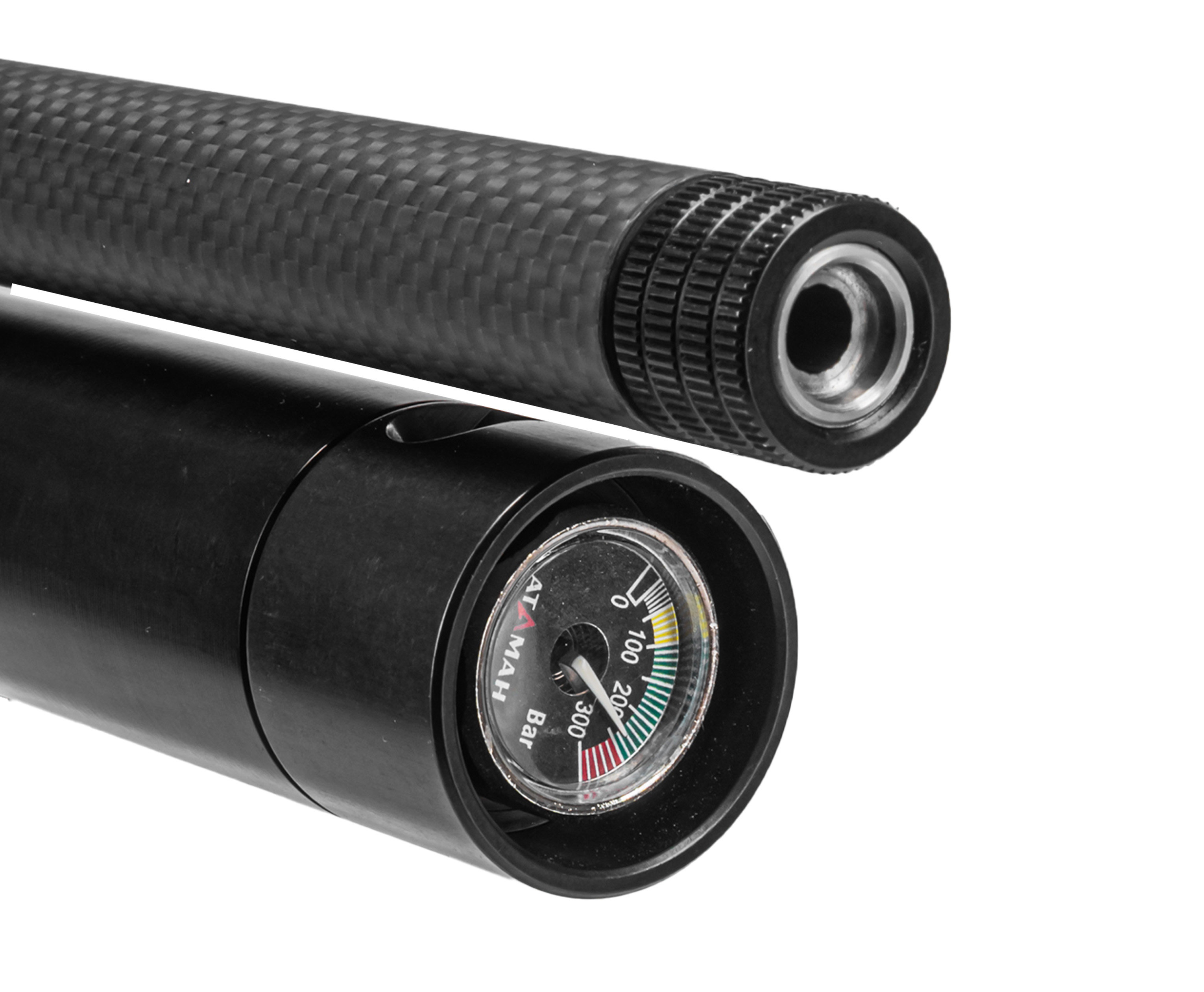 Заправка линейного резервуара объемом 160 кубических сантиметров осуществляется стандартным образом при помощи насосов ВД ручного или электрического типа. Подключение компрессорного оборудования происходит при помощи штуцера. С торца баллона встроен манометр для оперативного контроля текущего давления.