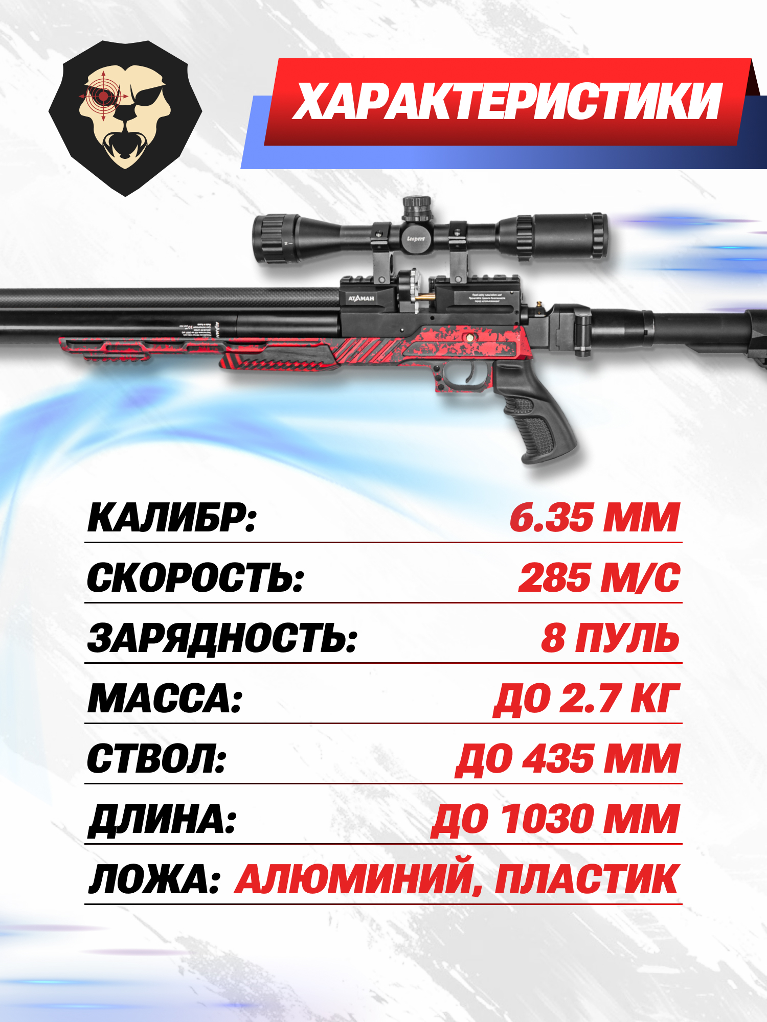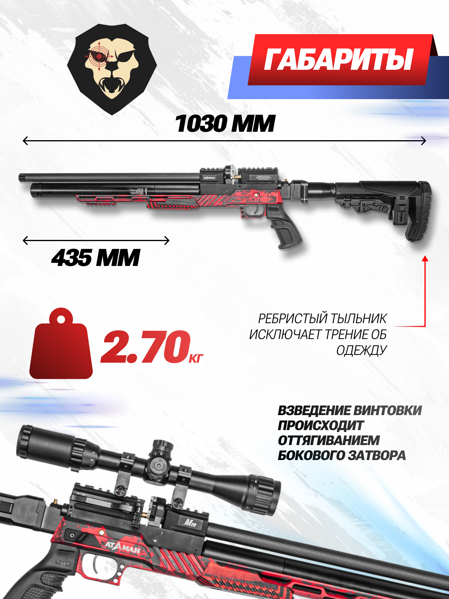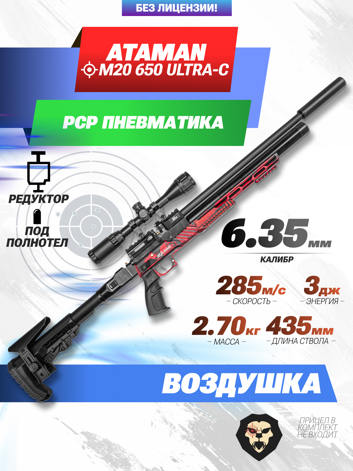 Пневматическая винтовка Ataman M20 650 Ultra-C 6.35 мм (алюминий, редуктор, под полнотел, красный) купить в интернет-магазине Popadiv10.