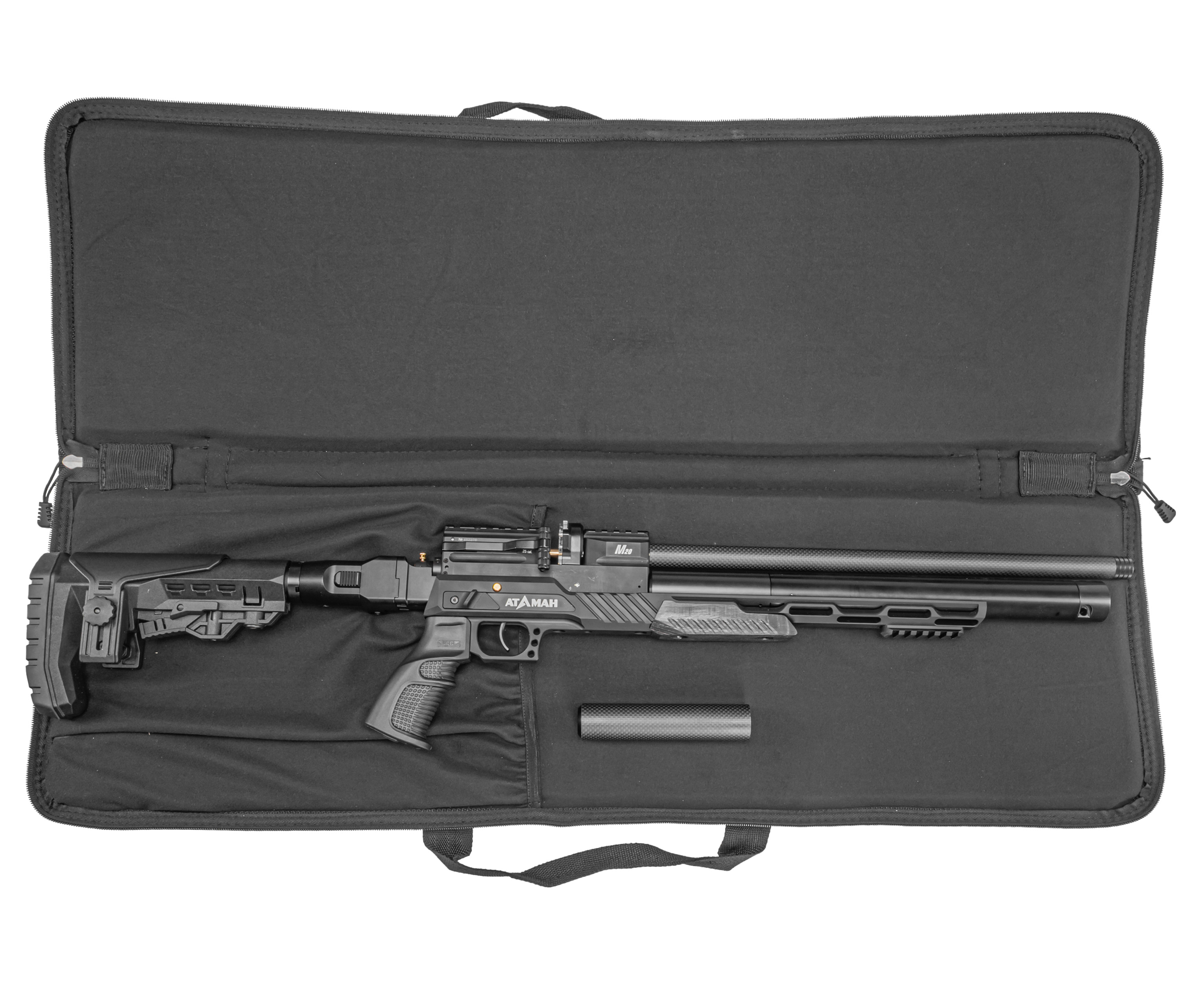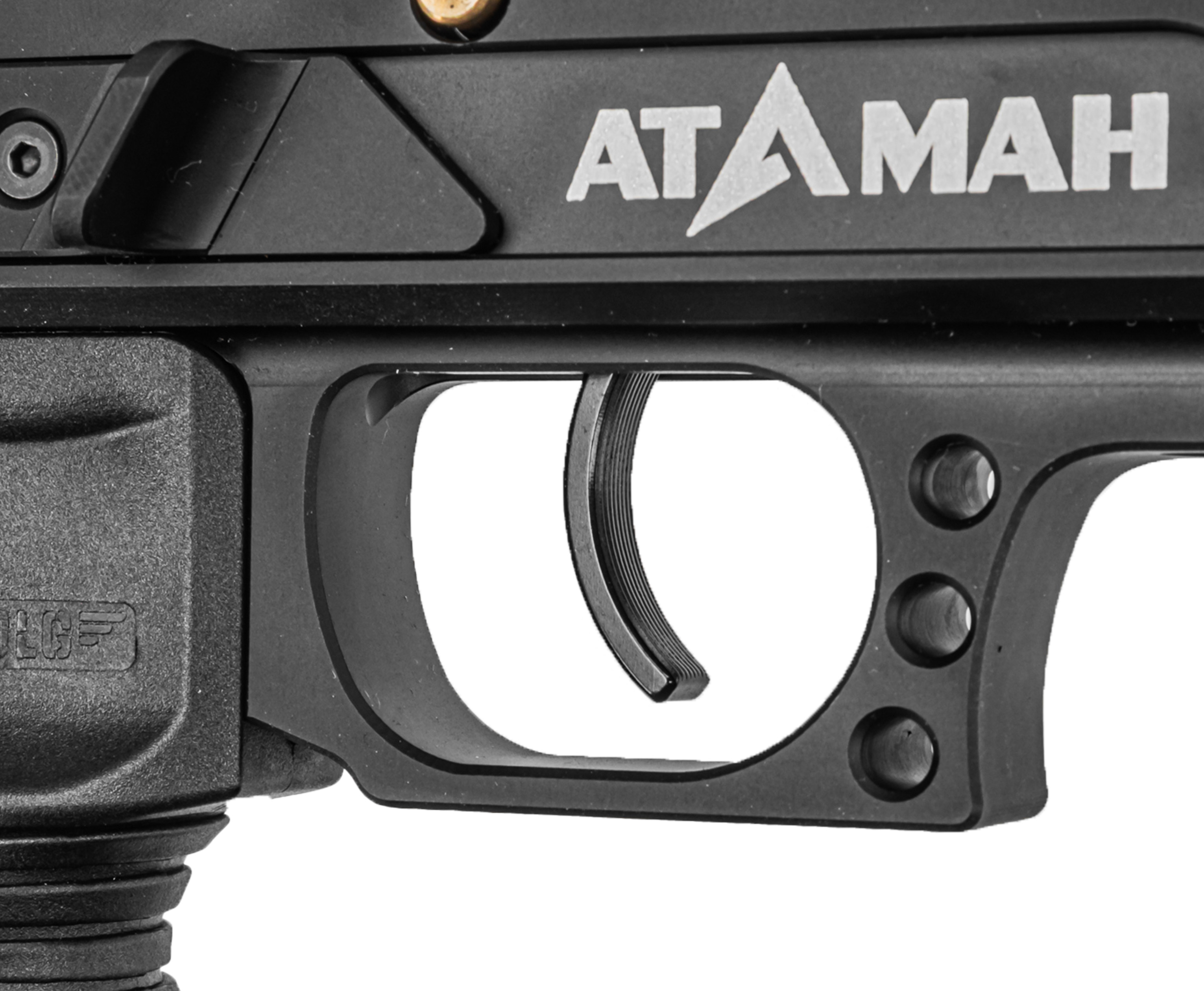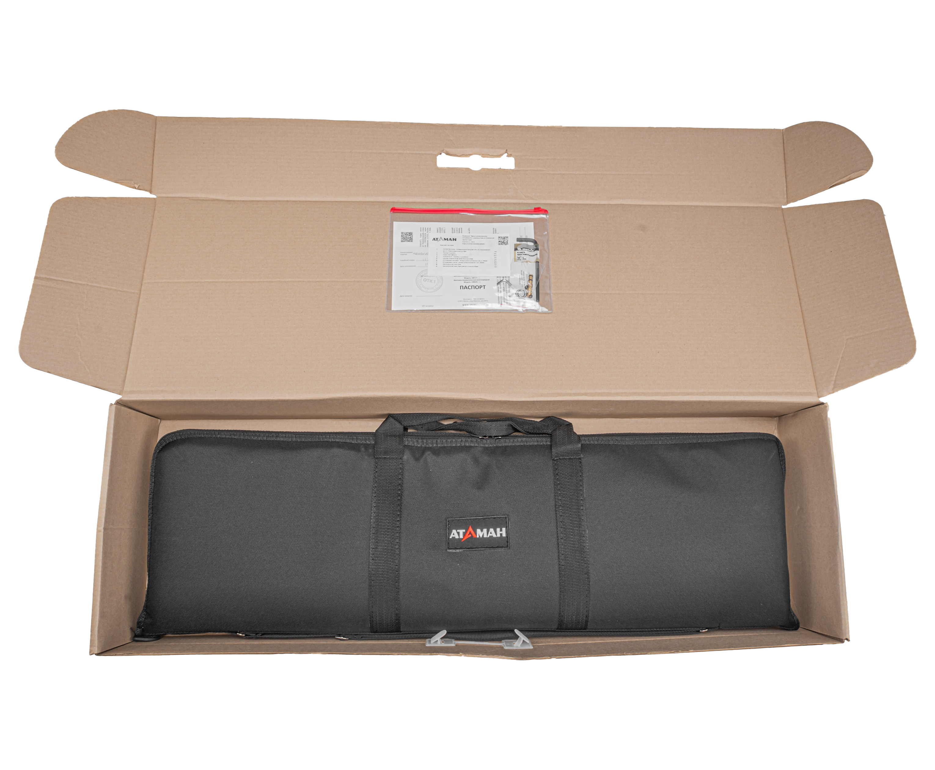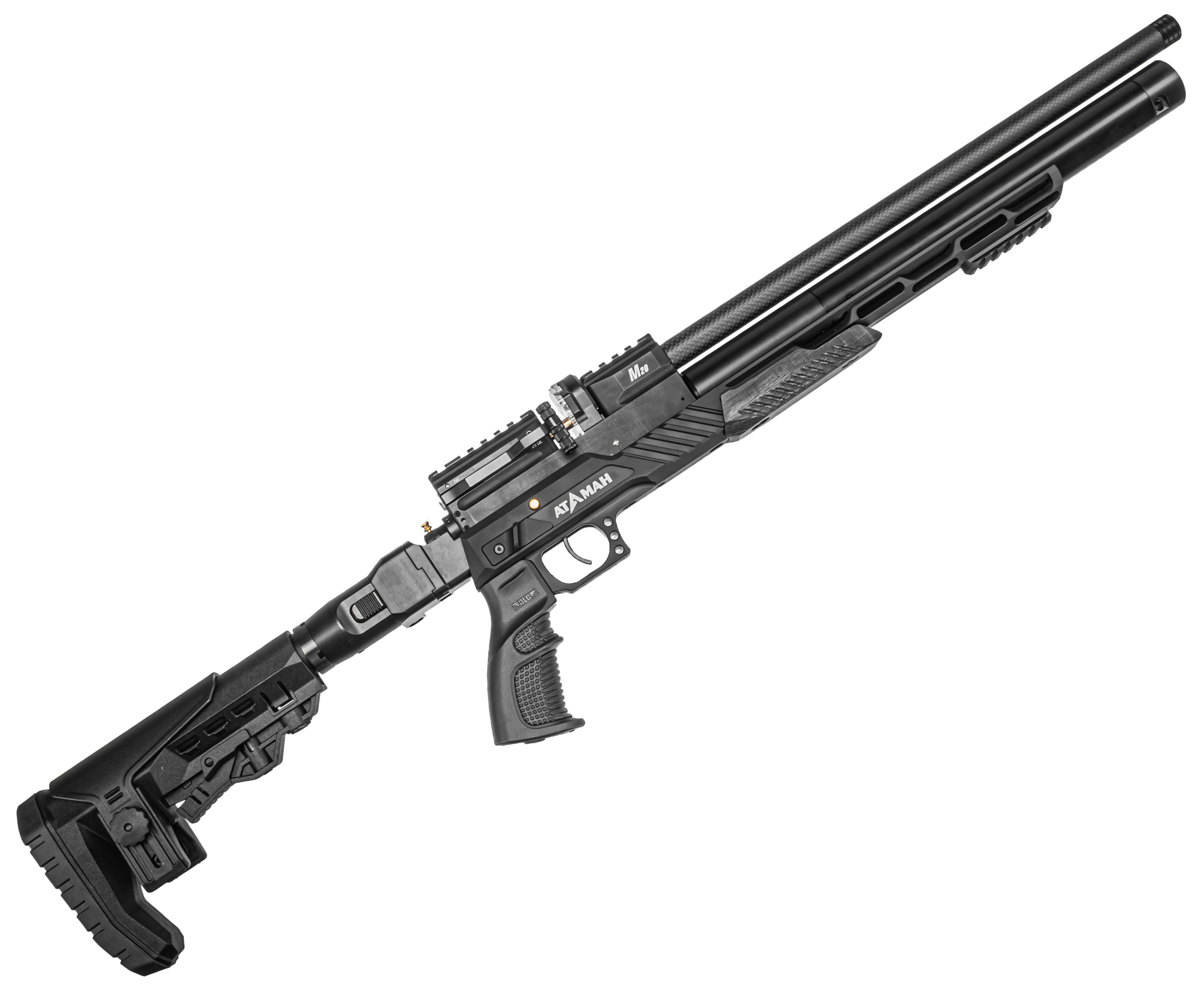 Карабин фирмы Атаман предполагает использование боеприпасов калибром 6.35 мм. Изделие оснастили нарезным стволом длиной до 435 миллиметров, внутреннее сечение которого дает зарядить как воланчиковую пулю, так и полнотел. Бланк получил увеличенный рабочий ресурс, так как изготавливается из инструментальной легированной стали и оформляется карбоновым кожухом.