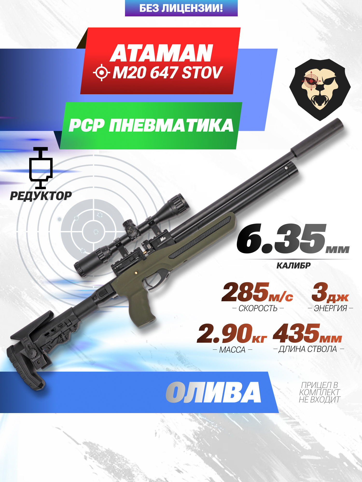 Информация о товаре "Пневматическая винтовка Ataman M20 647 STOV 6.35 мм (Олива, редуктор, волан)" носит ознакомительный характер, и не является публичной офертой, определяемой положениями Статьи 437 Гражданского кодекса Российской Федерации, характеристики, внешний вид, цвет и комплектация могут быть изменены производителем без уведомления.