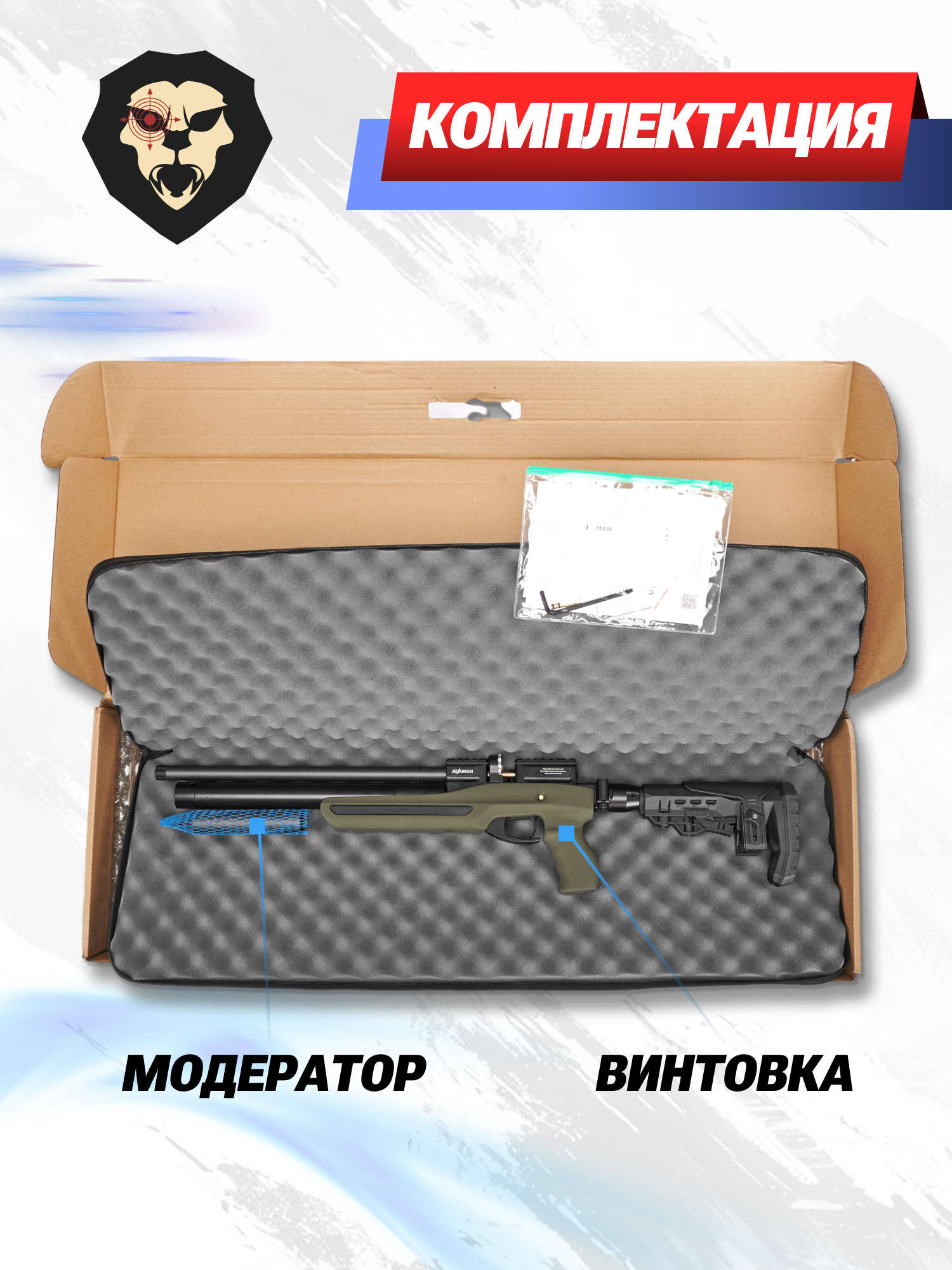 | Комплектация | Винтовка, чехол, магазин, заправочный штуцер, краткая документация, упаковка, копия сертификата (по запросу покупателя) |