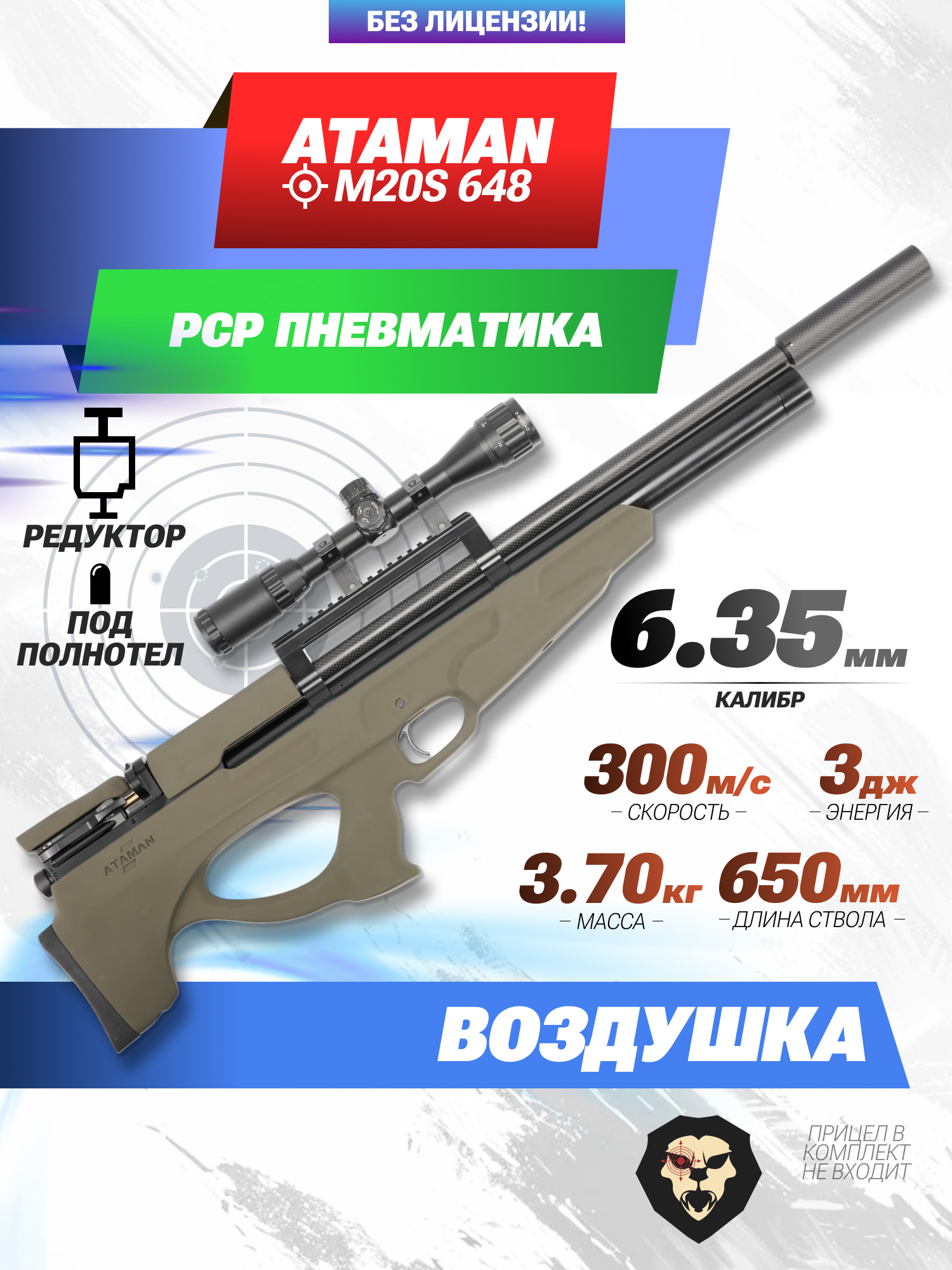 Пневматическая винтовка Ataman M20S 648 6.35 мм (Олива, редуктор, полнотел, Булл-Пап) купить в интернет-магазине Popadiv10.