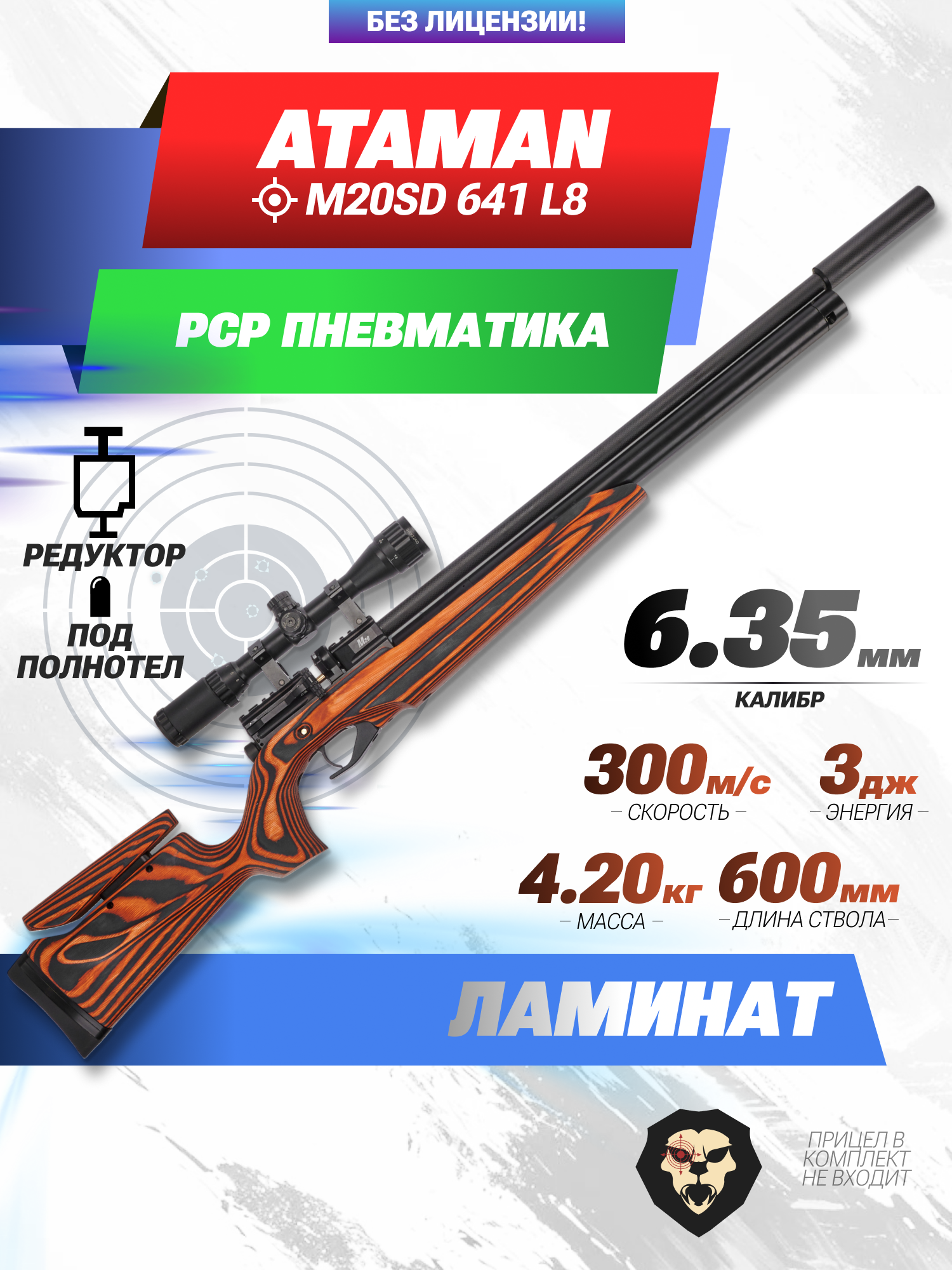 Пневматическая винтовка Ataman M20SD 641 L8 6.35 мм (редуктор, полнотел, ламинат, оранжевый) купить в интернет-магазине Popadiv10.