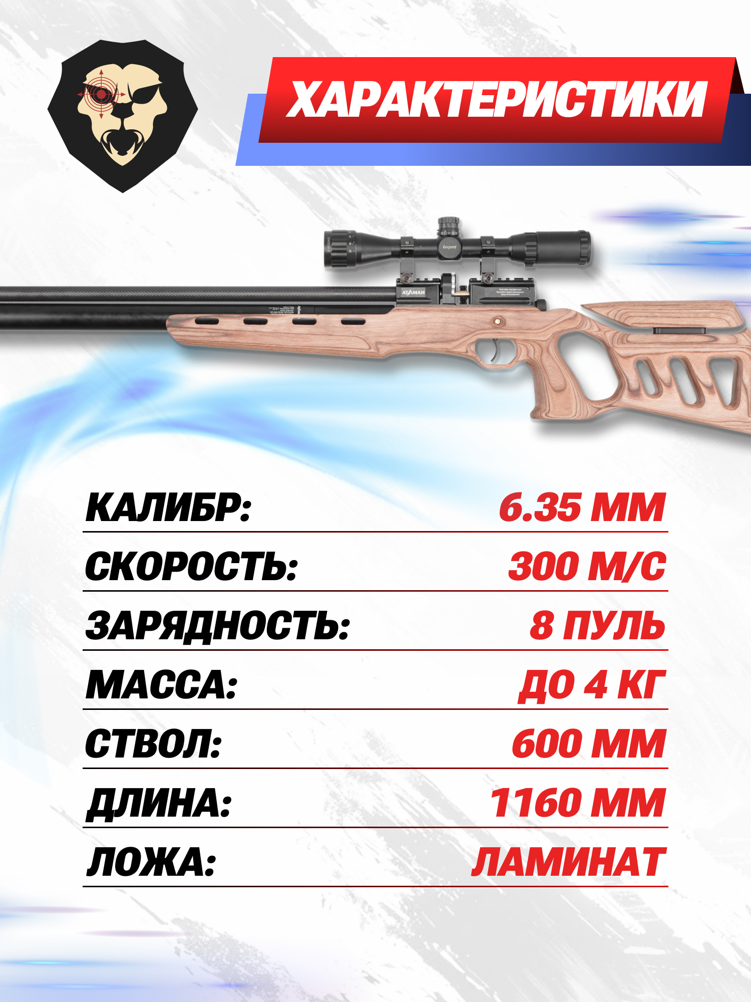 Информация о товаре "Пневматическая винтовка Ataman M20SD 642 L21 6.35 мм (редуктор, полнотел, ламинат)" носит ознакомительный характер, и не является публичной офертой, определяемой положениями Статьи 437 Гражданского кодекса Российской Федерации, характеристики, внешний вид, цвет и комплектация могут быть изменены производителем без уведомления.