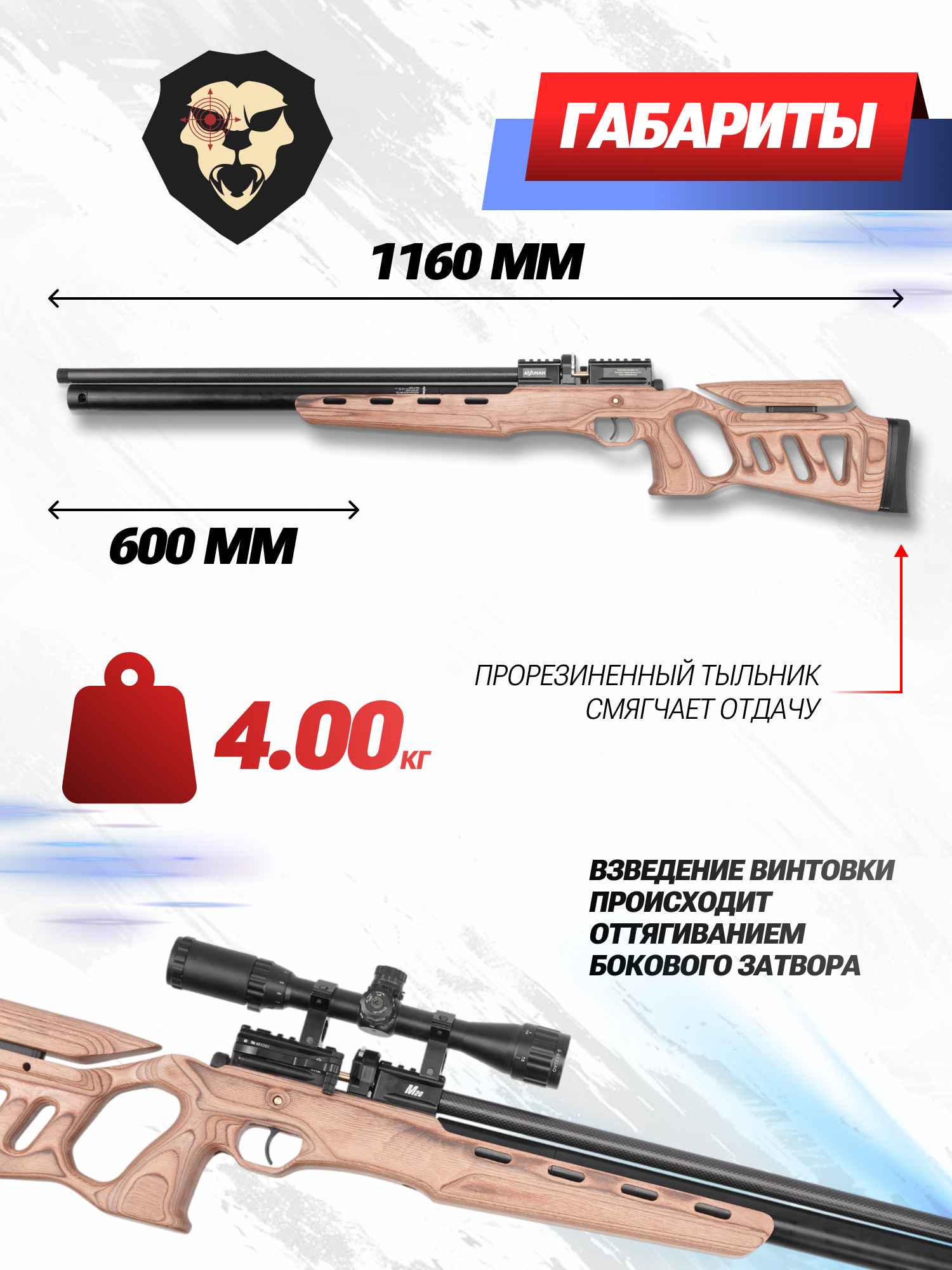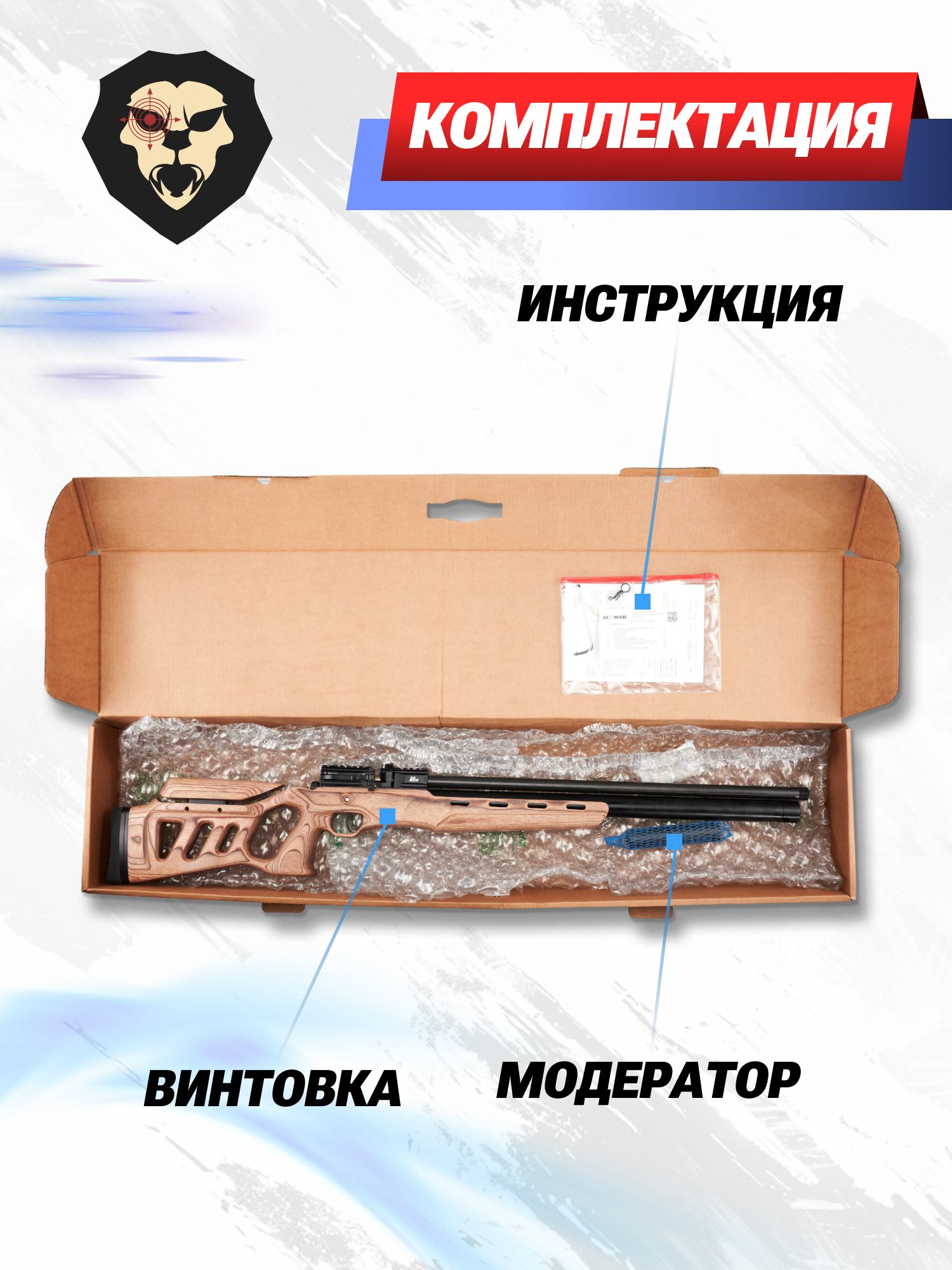 | Комплектация | Винтовка, магазин, заправочный штуцер, шестигранник, краткая документация, упаковка, копия сертификата (по запросу покупателя) |