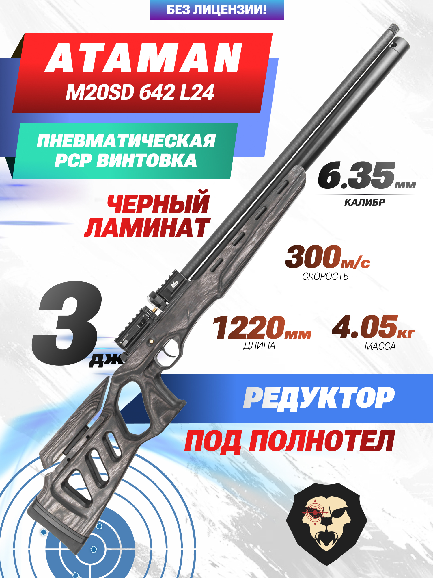 Пневматическая винтовка Ataman M20SD 642 L24 6.35 мм (редуктор, полнотел, черный, ламинат) купить в интернет-магазине Popadiv10.
