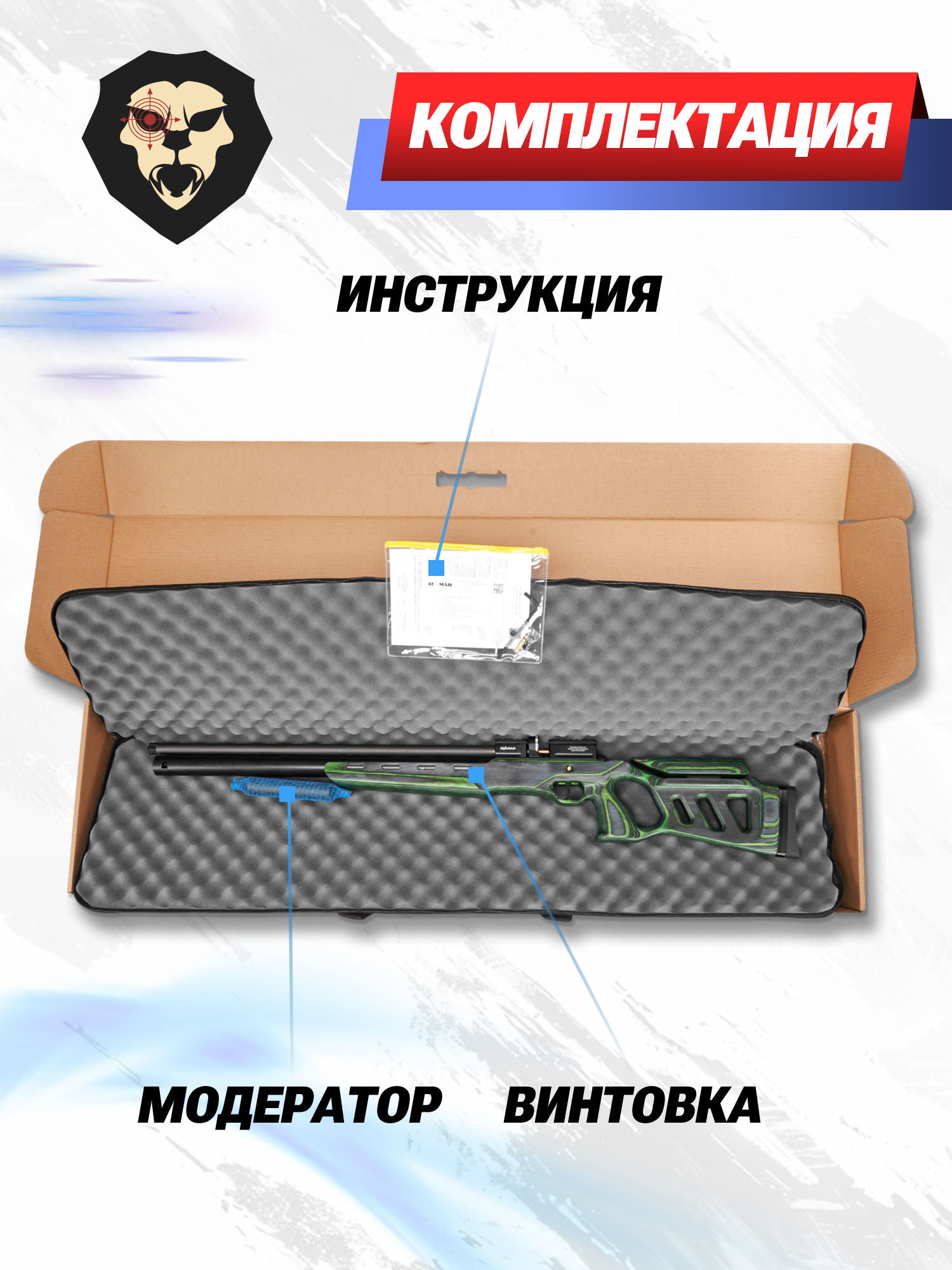 | Комплектация | Винтовка, магазин, саундмодератор, заправочный штуцер, ключи, краткая документация, упаковка, копия сертификата (по запросу покупателя) |