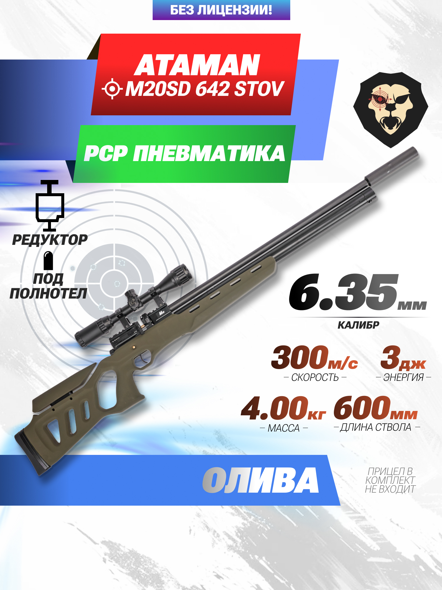 Информация о товаре "Пневматическая винтовка Ataman M20SD 642 STOV 6.35 мм (редуктор, полнотел, олива)" носит ознакомительный характер, и не является публичной офертой, определяемой положениями Статьи 437 Гражданского кодекса Российской Федерации, характеристики, внешний вид, цвет и комплектация могут быть изменены производителем без уведомления.