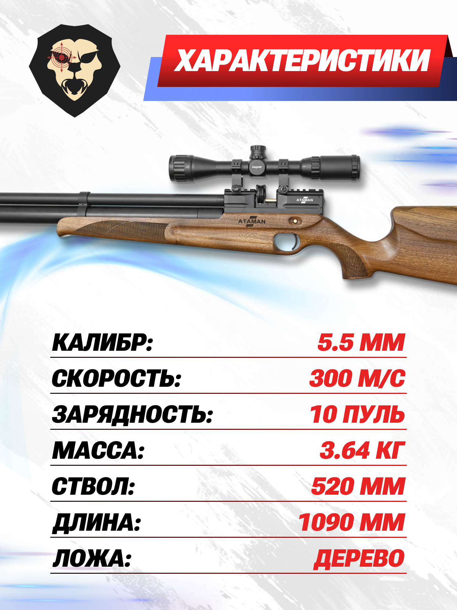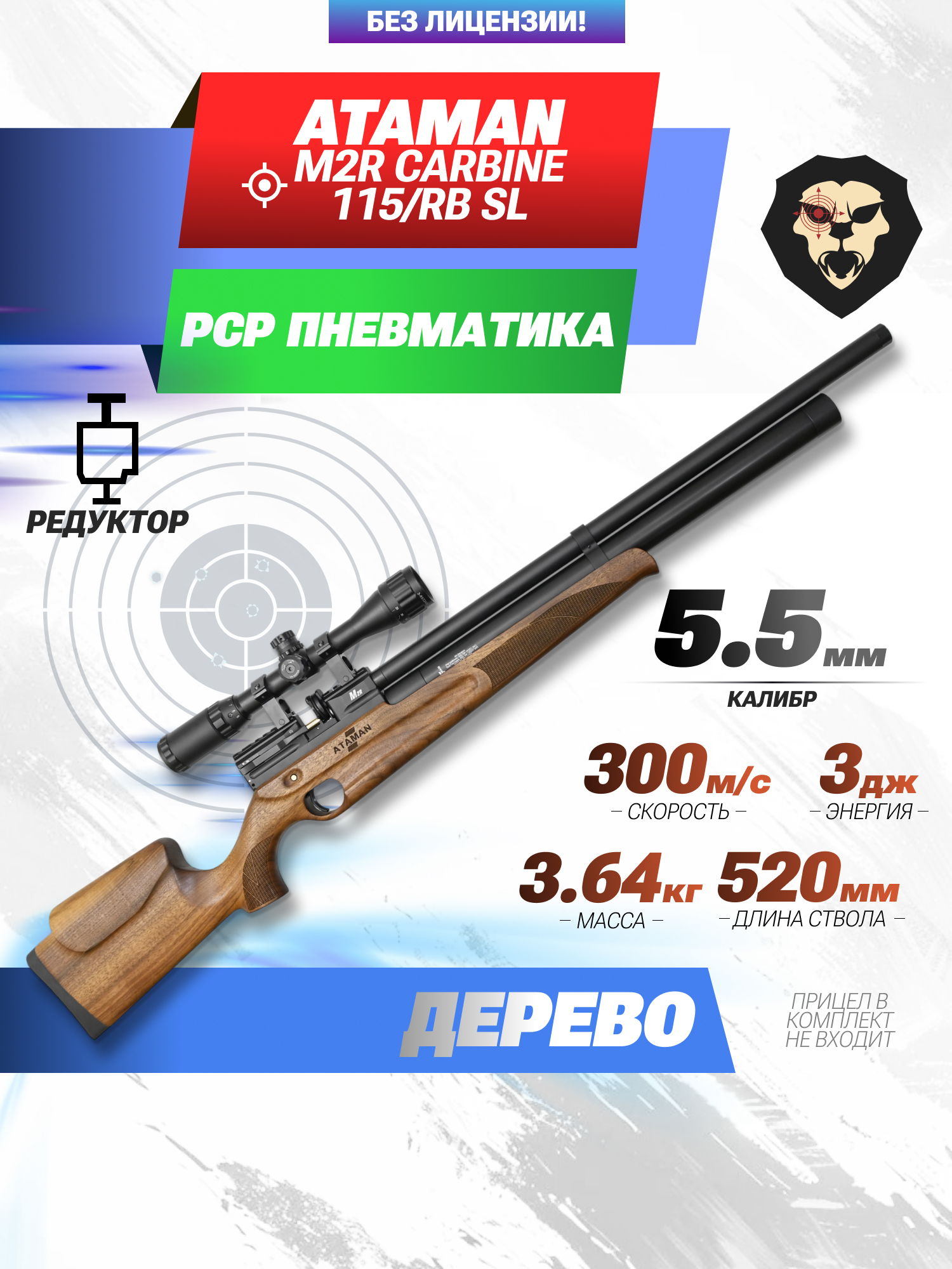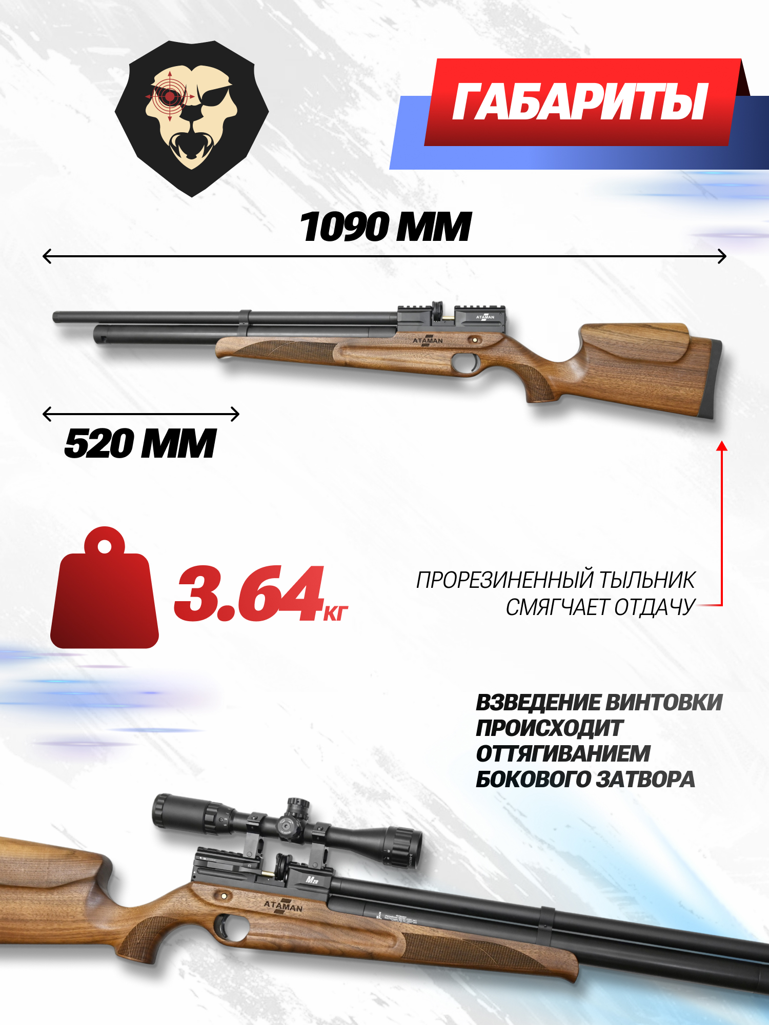 Информация о товаре "Пневматическая винтовка Ataman M2R Carbine 115/RB SL 5.5 мм (PCP, орех, редуктор)" носит ознакомительный характер, и не является публичной офертой, определяемой положениями Статьи 437 Гражданского кодекса Российской Федерации, характеристики, внешний вид, цвет и комплектация могут быть изменены производителем без уведомления.