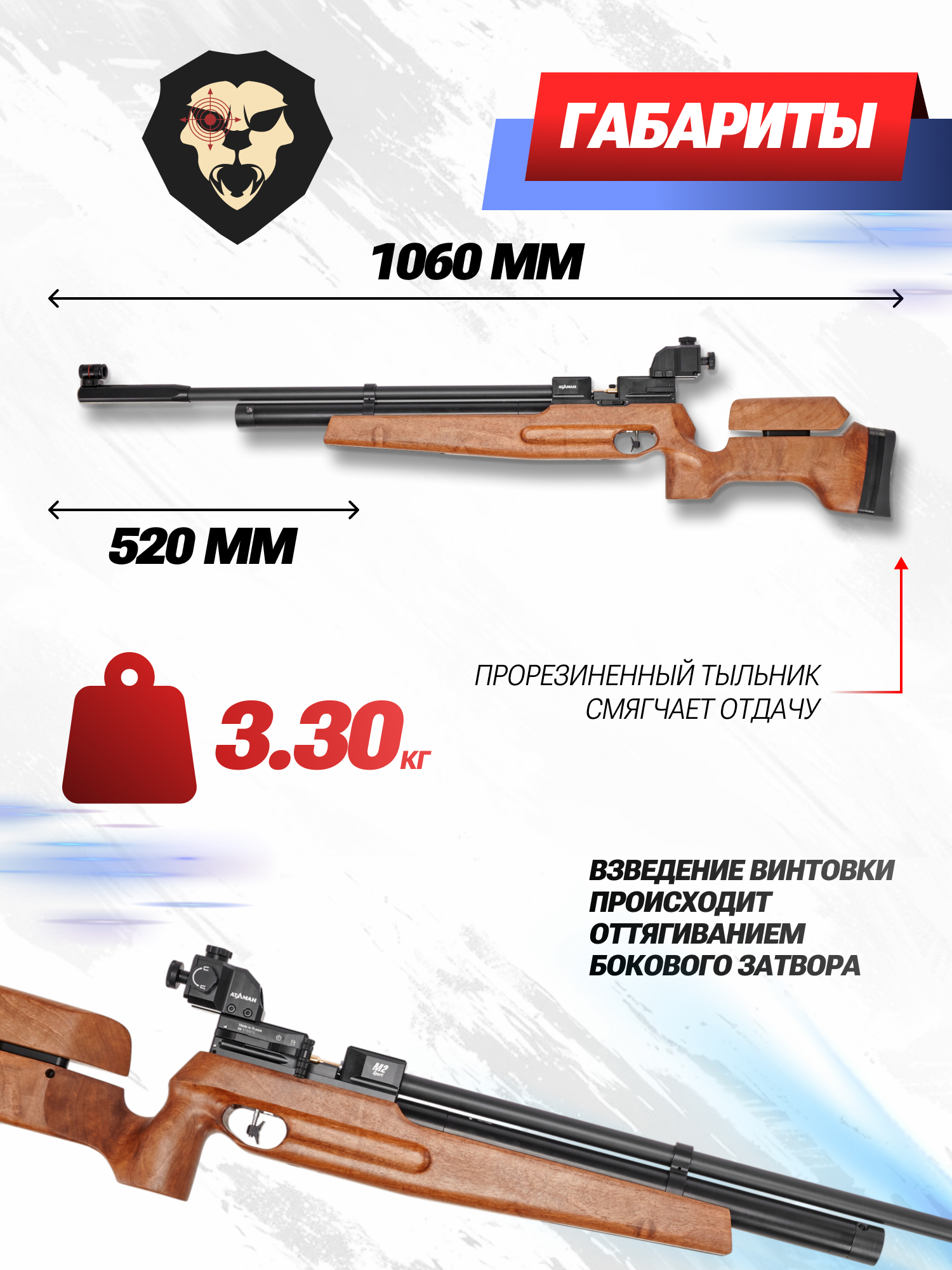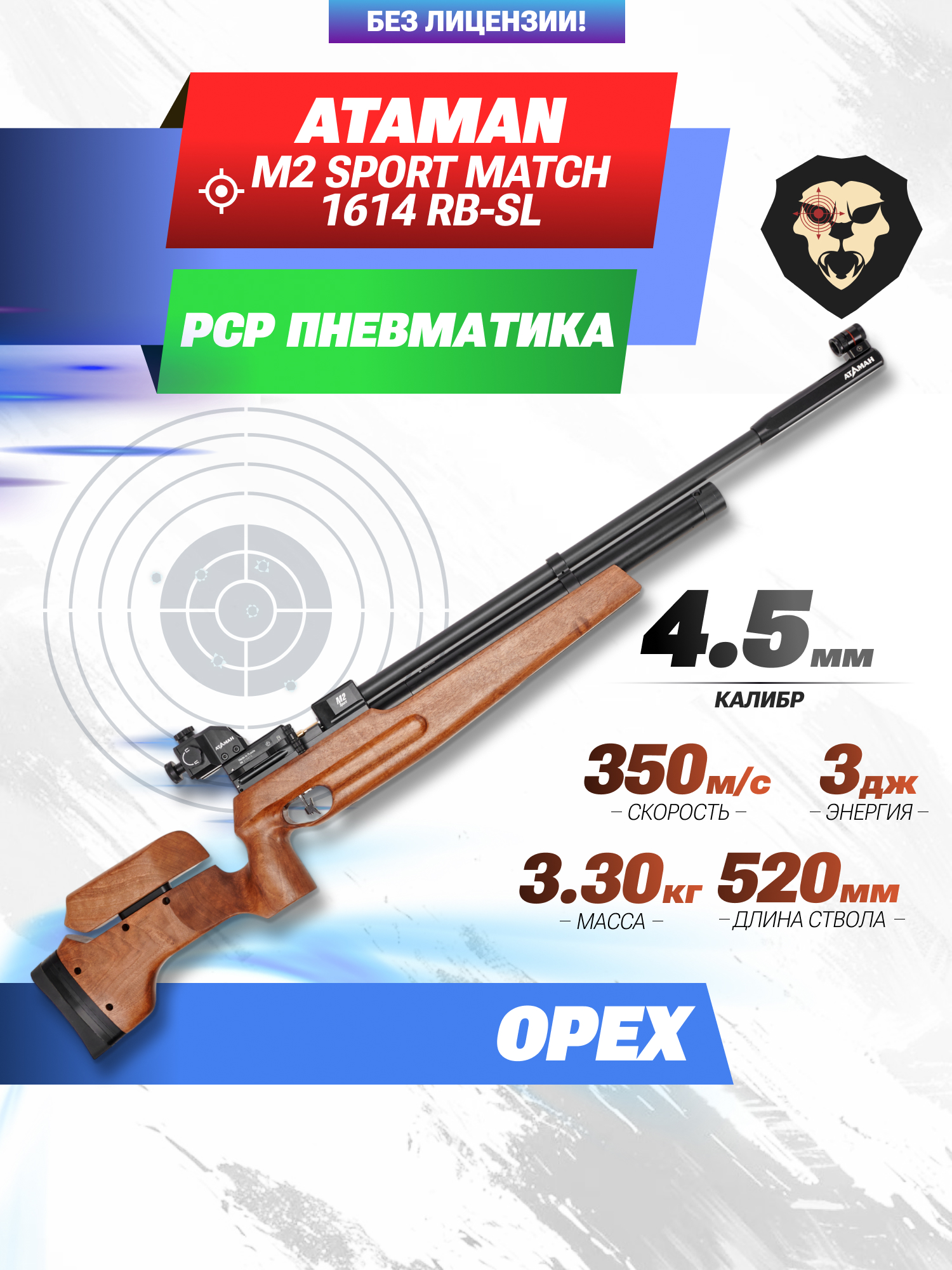 Информация о товаре "Спортивная пневматическая винтовка Ataman M2 Sport Match 1614 RB-SL 4.5 мм (Орех)" носит ознакомительный характер, и не является публичной офертой, определяемой положениями Статьи 437 Гражданского кодекса Российской Федерации, характеристики, внешний вид, цвет и комплектация могут быть изменены производителем без уведомления.