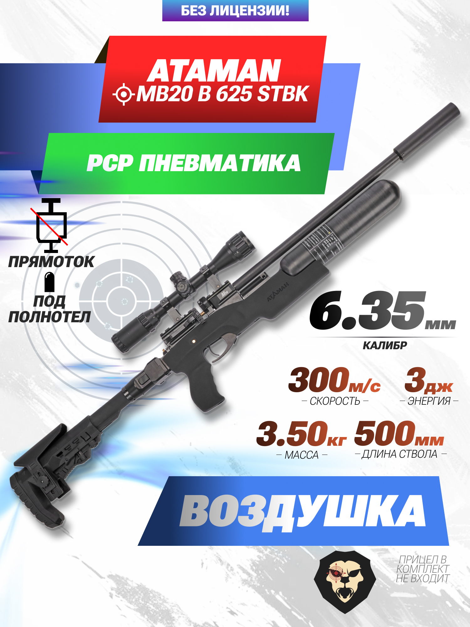 На практике в заводском исполнении винтовка Атаман 6.35 мм МБ20 не реализует указанную скорость с учетом эксплуатации в РФ. Изделие выпускается строго в разрешенной мощности 3 Дж. Таким образом, совершить покупку сможет каждый желающий без требования к оформлению лицензии по достижении возраста совершеннолетия.
