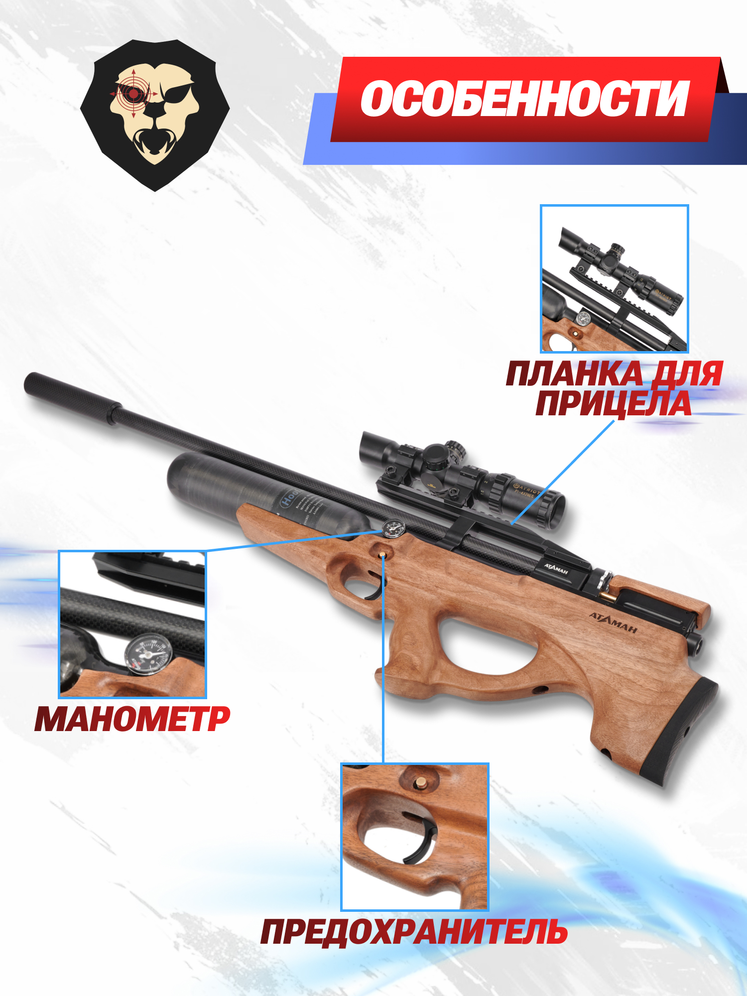 Пневматика Ataman с предварительным заполнением воздухом встроенного ресивера пользуется повышенным спросом не только у стрелков-любителей, но и профессионалов. Популярность ПСП «воздушек» российского изготовления объясняется тщательной проработкой каждого узла конструкции, что благоприятно влияет на технические характеристики и надежность изделий. Помимо этого, стоит отметить широкий модельный ряд фирмы - ассортимент бренда включает винтовки как в классическом исполнении, так и в конфигурации БуллПап.
