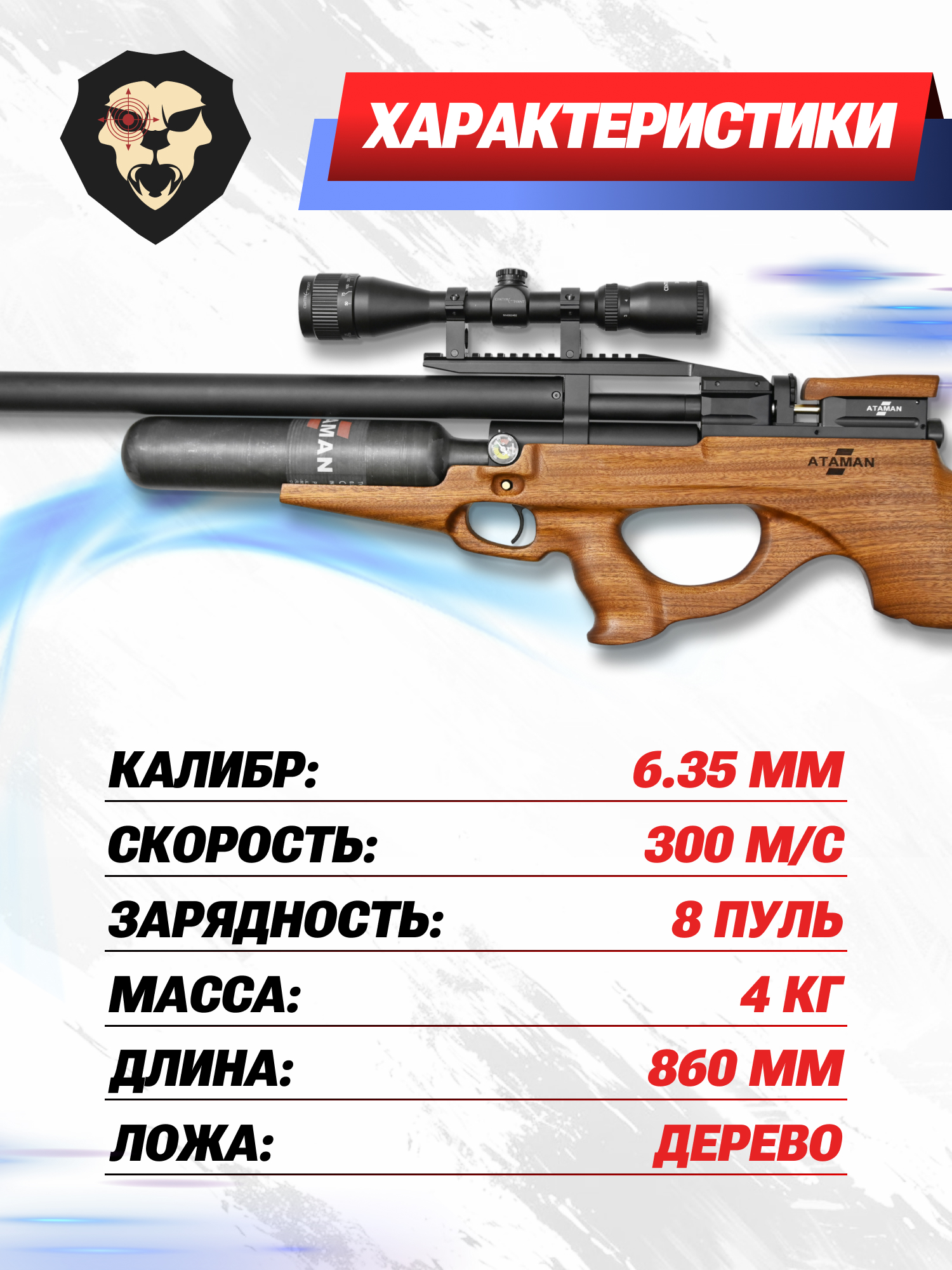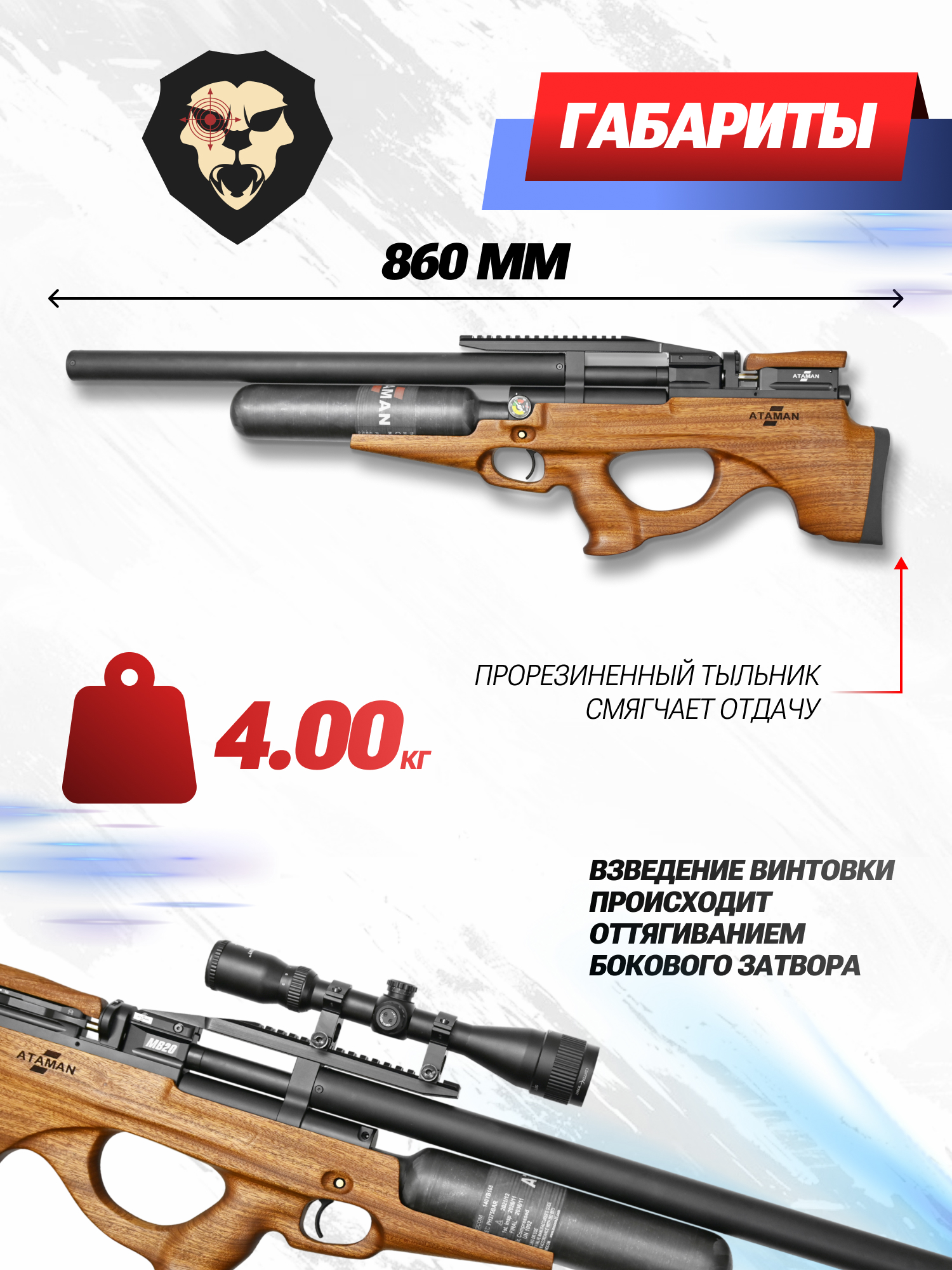 Информация о товаре "Пневматическая винтовка Ataman MB20 B66 Буллпап Колба (6.35 мм, Красное дерево, прямоток)" носит ознакомительный характер, и не является публичной офертой, определяемой положениями Статьи 437 Гражданского кодекса Российской Федерации, характеристики, внешний вид, цвет и комплектация могут быть изменены производителем без уведомления.