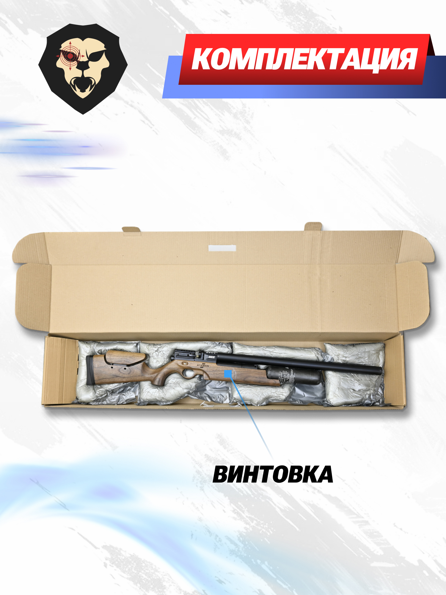 | Комплектация | Винтовка, упаковка, заправочный штуцер, краткая документация, копия сертификата (по запросу покупателя) |