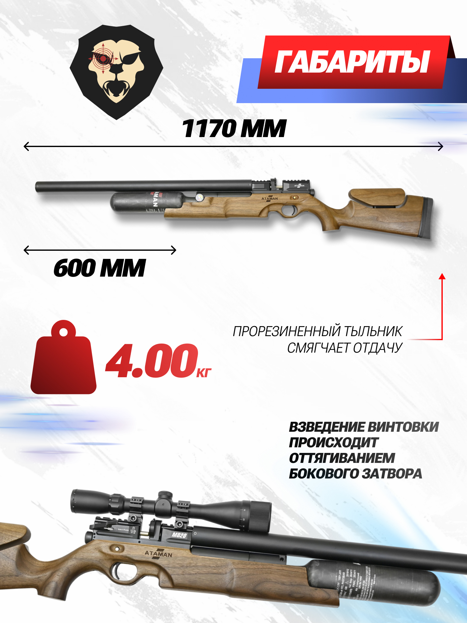 Рынок пневматического ПСП оружия представлен обширным количеством моделей, которые выпускаются от разных брендов по всему миру. Повышенным спросом среди множества товаров пользуются экземпляры от отечественного производителя Атаман, представившего при обновлении линейки устройств карабин MB20 C15 с колбовым резервуаром под сжатый газ.