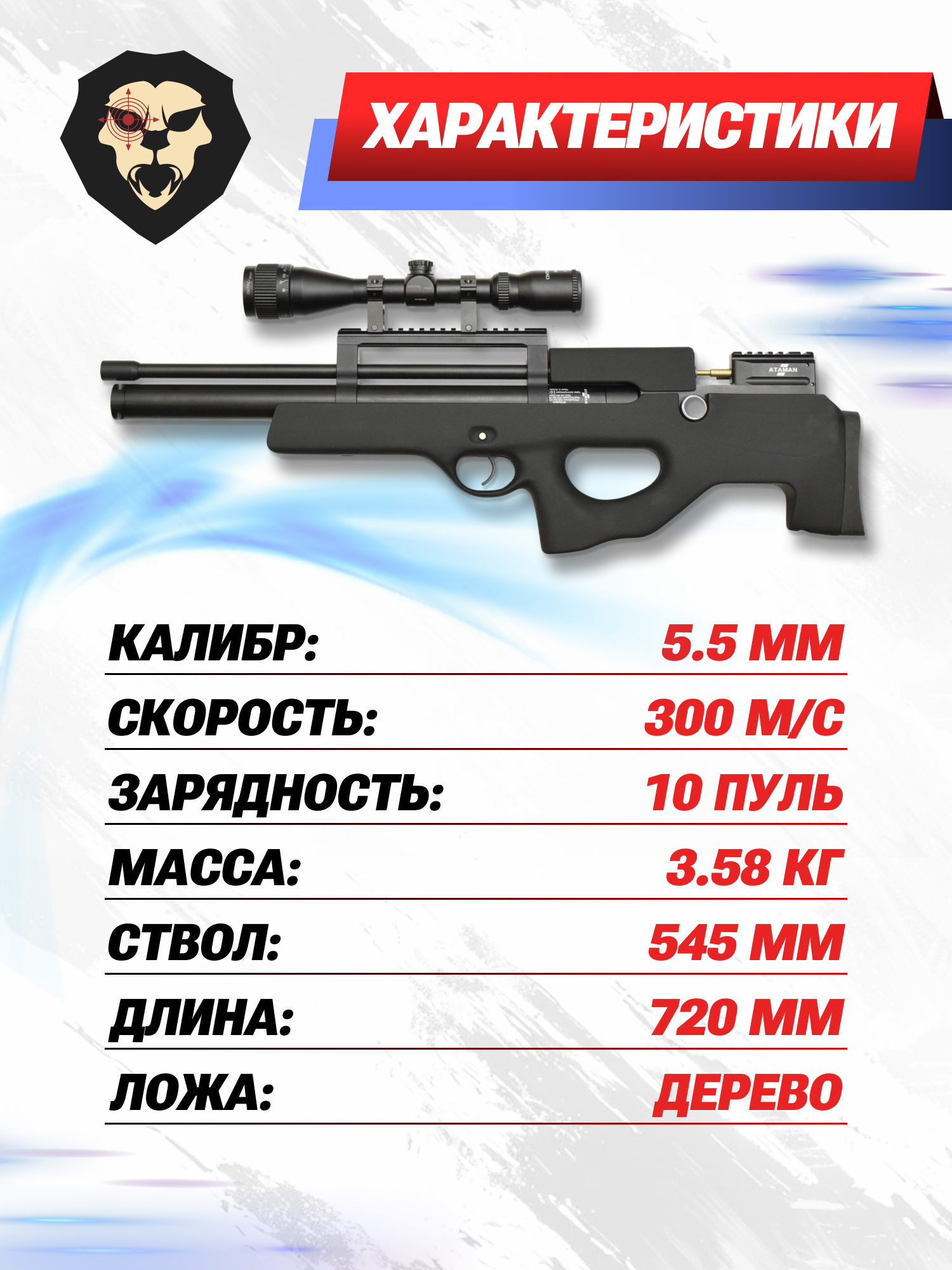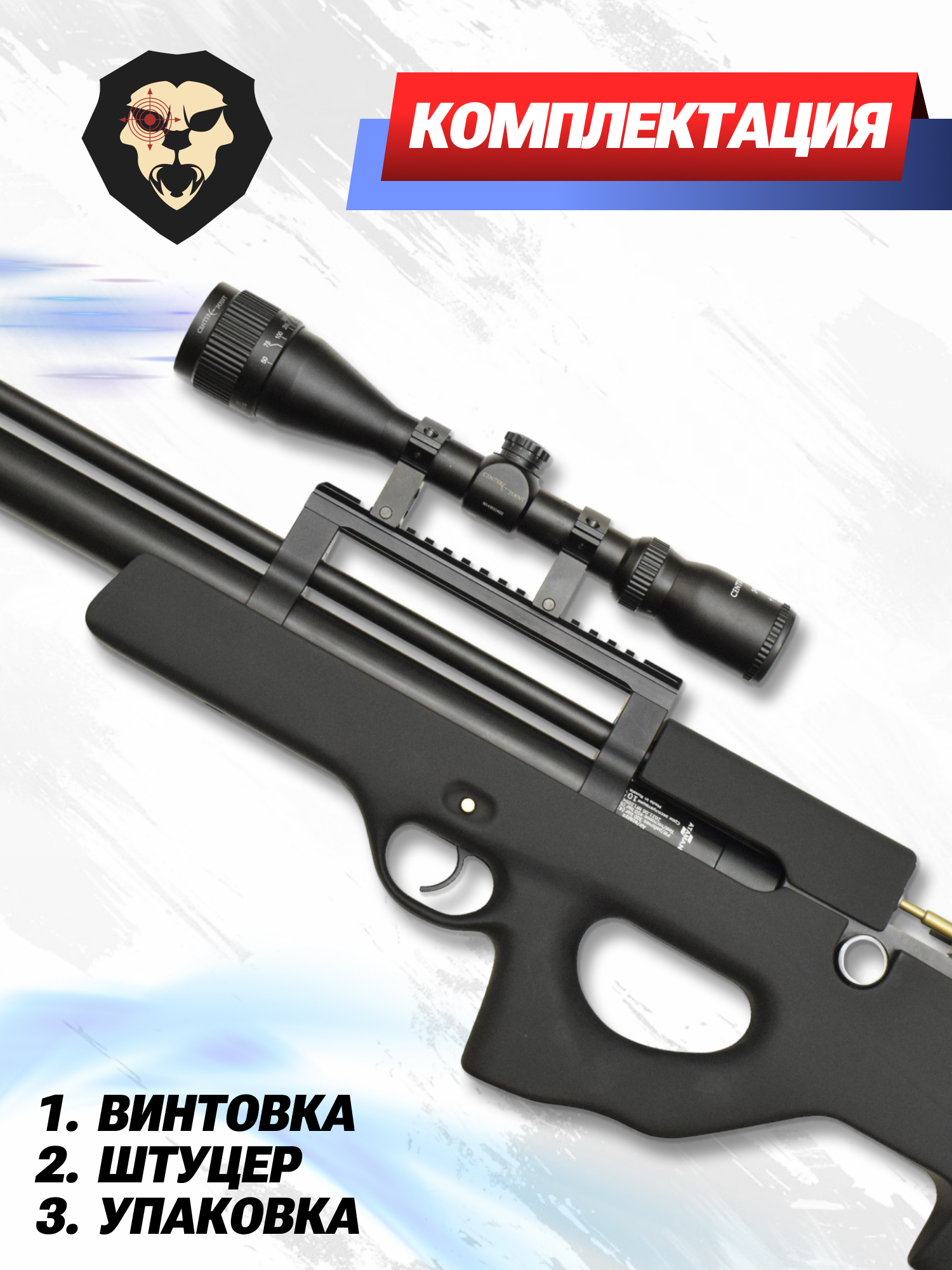 | Комплектация | Винтовка, упаковка, заправочный штуцер, краткая документация, копия сертификата (по запросу покупателя) |