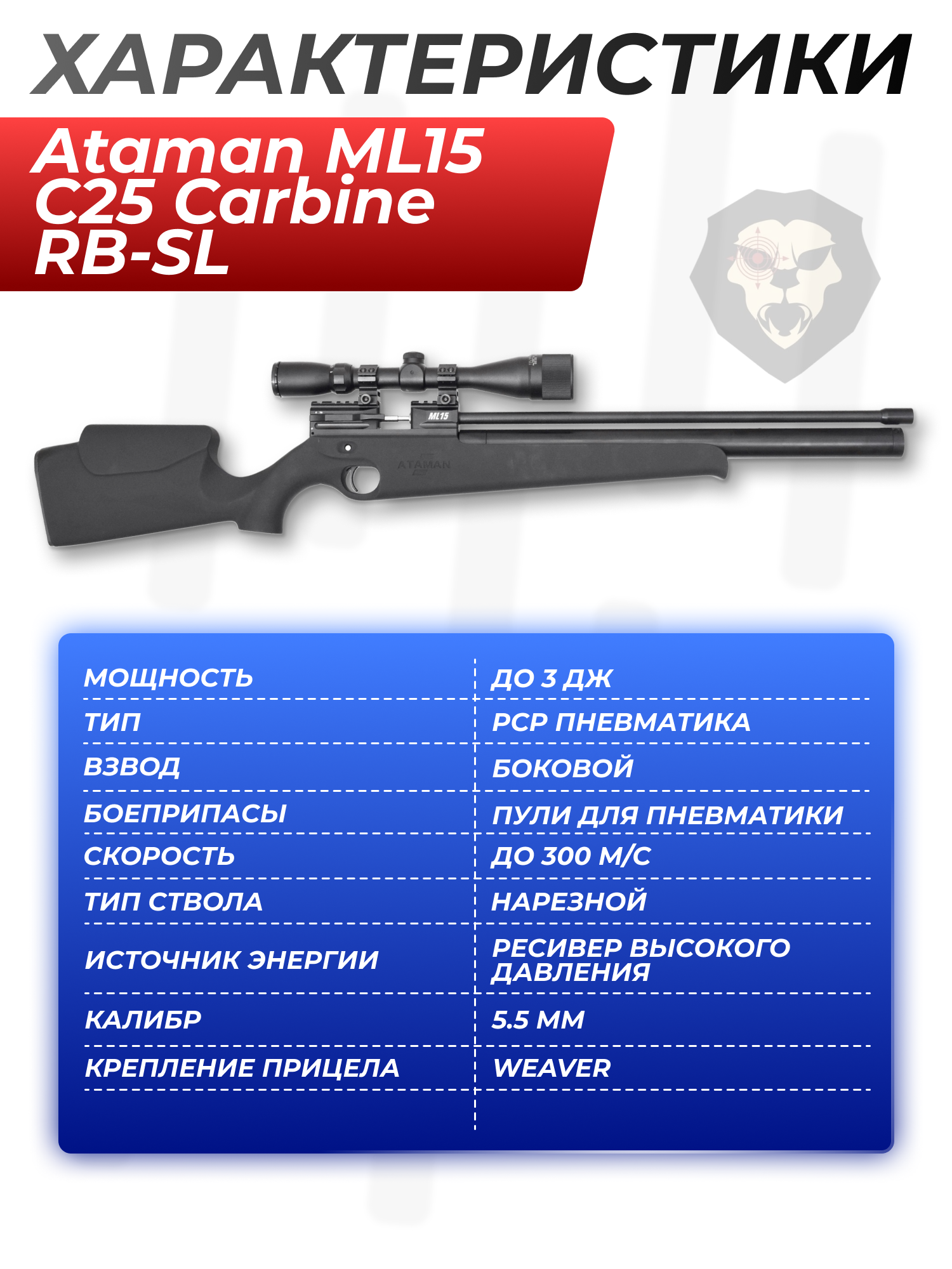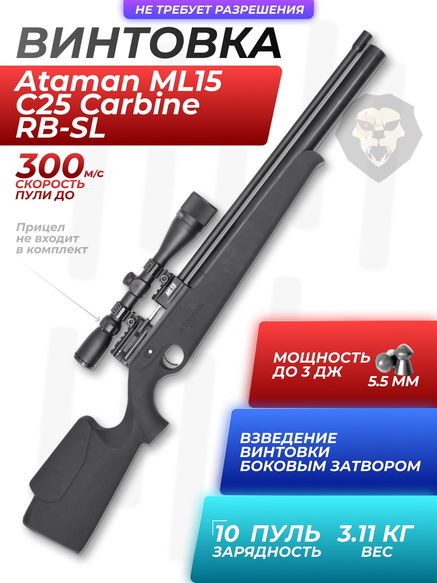 Артикул производителя Пневматическая винтовка Ataman ML15 C25 Carbine RB-SL 5.5 мм (Soft-Touch) по низкой цене 107000 руб. Модель со штрихкодом производителя Вы можете оплатить наложенным платежем с доставкой или в отделении транспортной компании (ПЭК, СДЭК, Boxberry). Ваш заказ со штрихкодом 2000000073316 забрать на почте с оплатой при получении в любой части Российской Федерации.