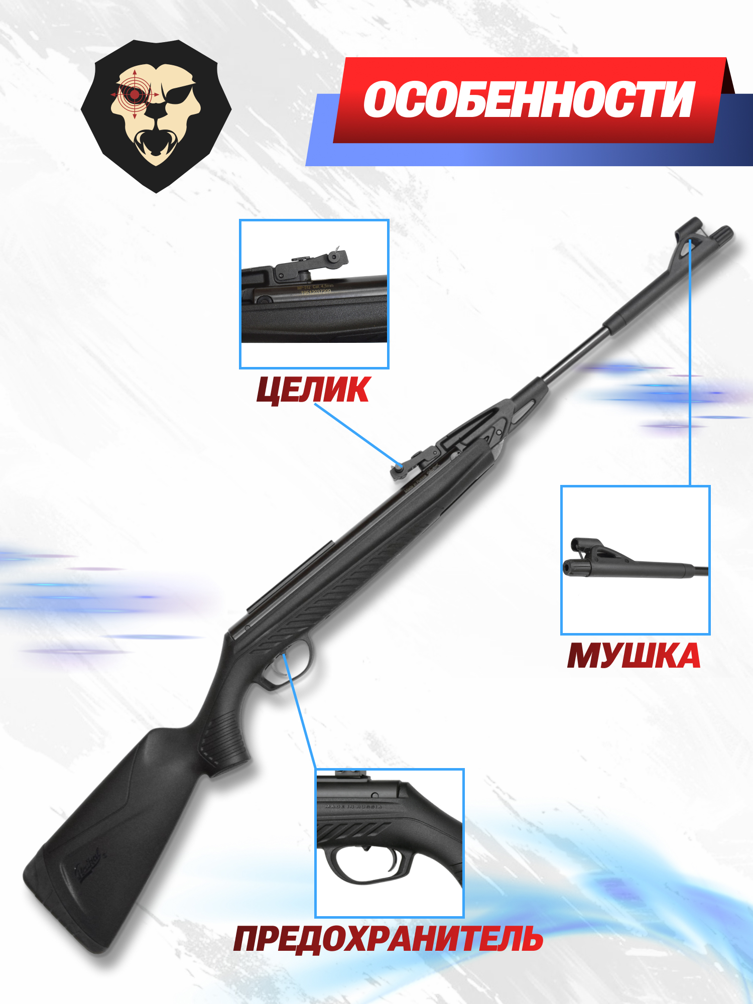 Пластиковая ложа не только дала винтовке легкий вес, но и отразилась на эргономических качествах. Пневматика комфортно лежит в руках и за счет ребристых насечек не выскальзывает при работе в перчатках. Приклад снабжен резиновым тыльником, который гасит удар в плечо в момент выстрела.