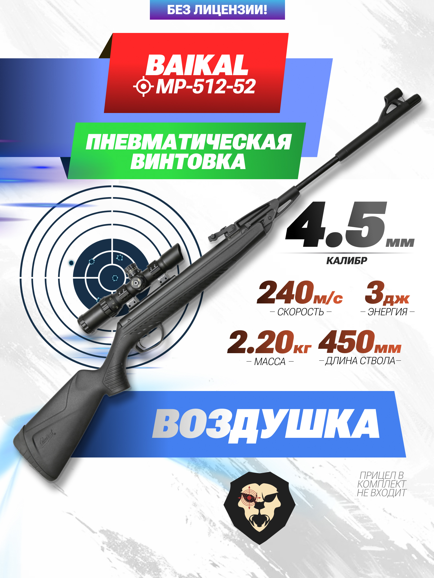 Пневматическая винтовка Baikal МР-512-52 4.5 мм (пластик) купить в интернет-магазине Popadiv10.