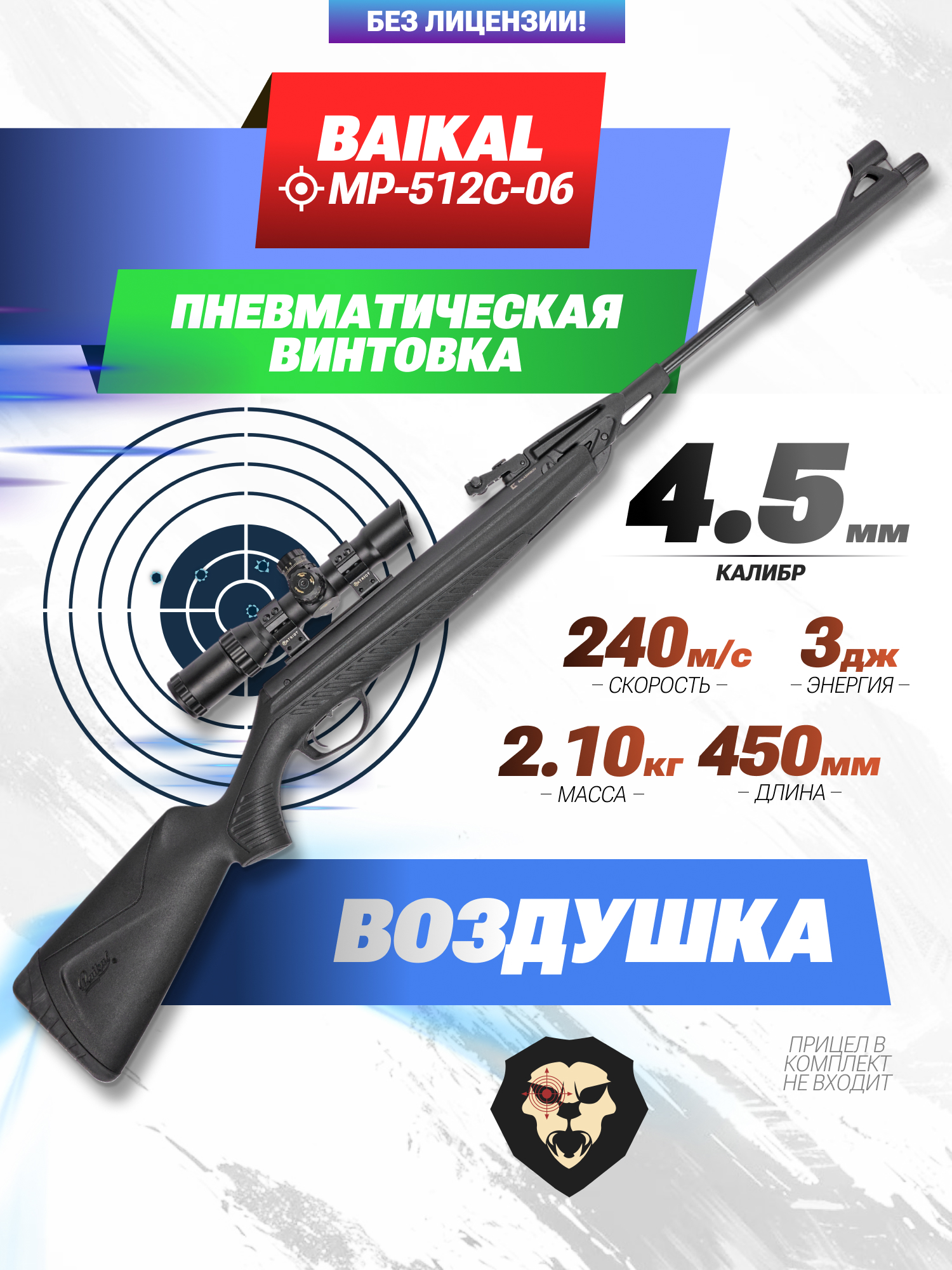 Пневматическая винтовка Baikal МР-512С-06 4.5 мм (3 Дж) купить в интернет-магазине Popadiv10.