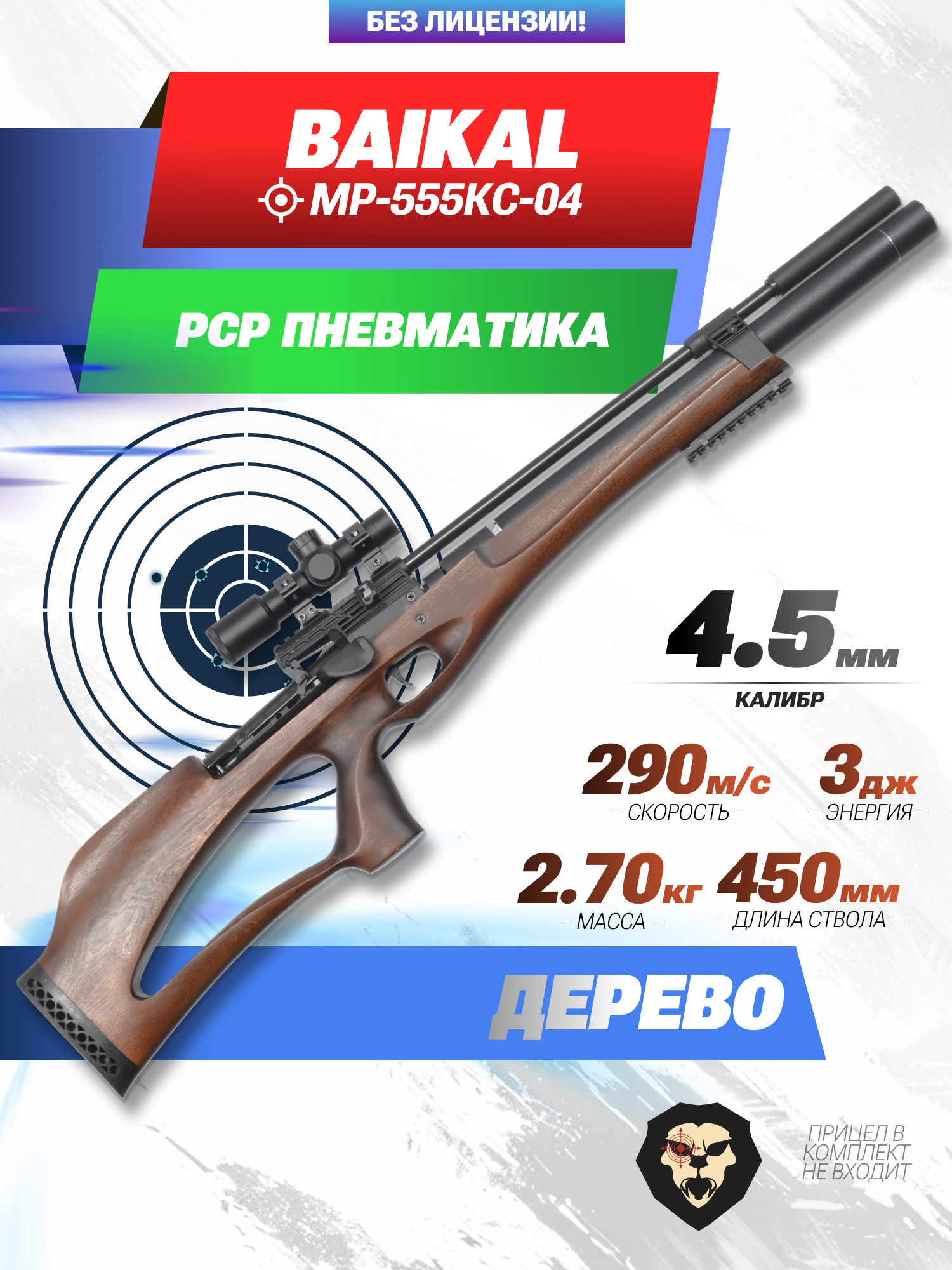 Информация о товаре "Пневматическая винтовка Baikal МР-555КС-04 4.5 мм (дерево)" носит ознакомительный характер, и не является публичной офертой, определяемой положениями Статьи 437 Гражданского кодекса Российской Федерации, характеристики, внешний вид, цвет и комплектация могут быть изменены производителем без уведомления.