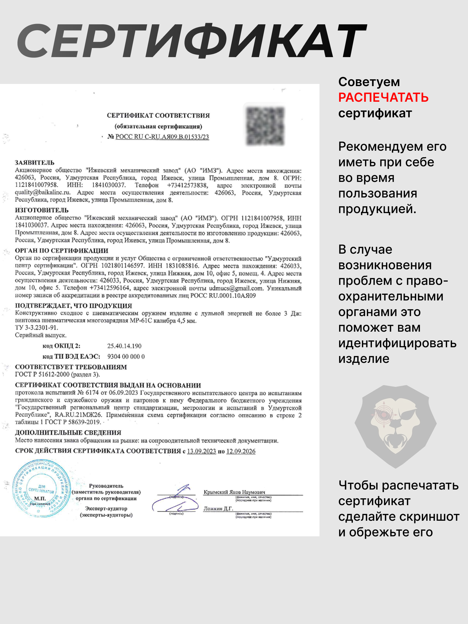 Артикул производителя 19548 Пневматическая винтовка Baikal МР-61С (ИЖ-61С) по низкой цене 10999 руб. Модель со штрихкодом производителя Вы можете оплатить наложенным платежем с доставкой или в отделении транспортной компании (ПЭК, СДЭК, Boxberry). Ваш заказ со штрихкодом 2000000041476 забрать на почте с оплатой при получении в любой части Российской Федерации.