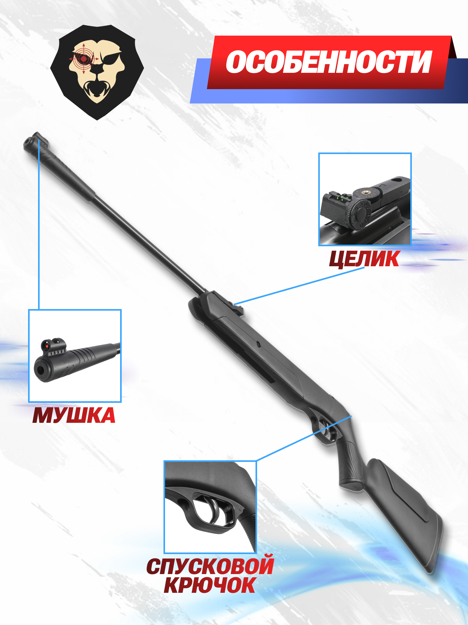 Внимание! Данная модель поставляется в разрешенной мощности для свободного приобретения на территории Российской Федерации. При этом в модели имеется возможность увеличения мощности путем замены части деталей или настройки конструкции, однако не стоит забывать о Федеральном законе «Об оружии» № 150 - ФЗ. В случае необходимости, опираясь на данный закон и руководствуясь им, возможно, потребуется получить разрешение от ЛЛР ГУ МВД России после вмешательства в конструкцию.