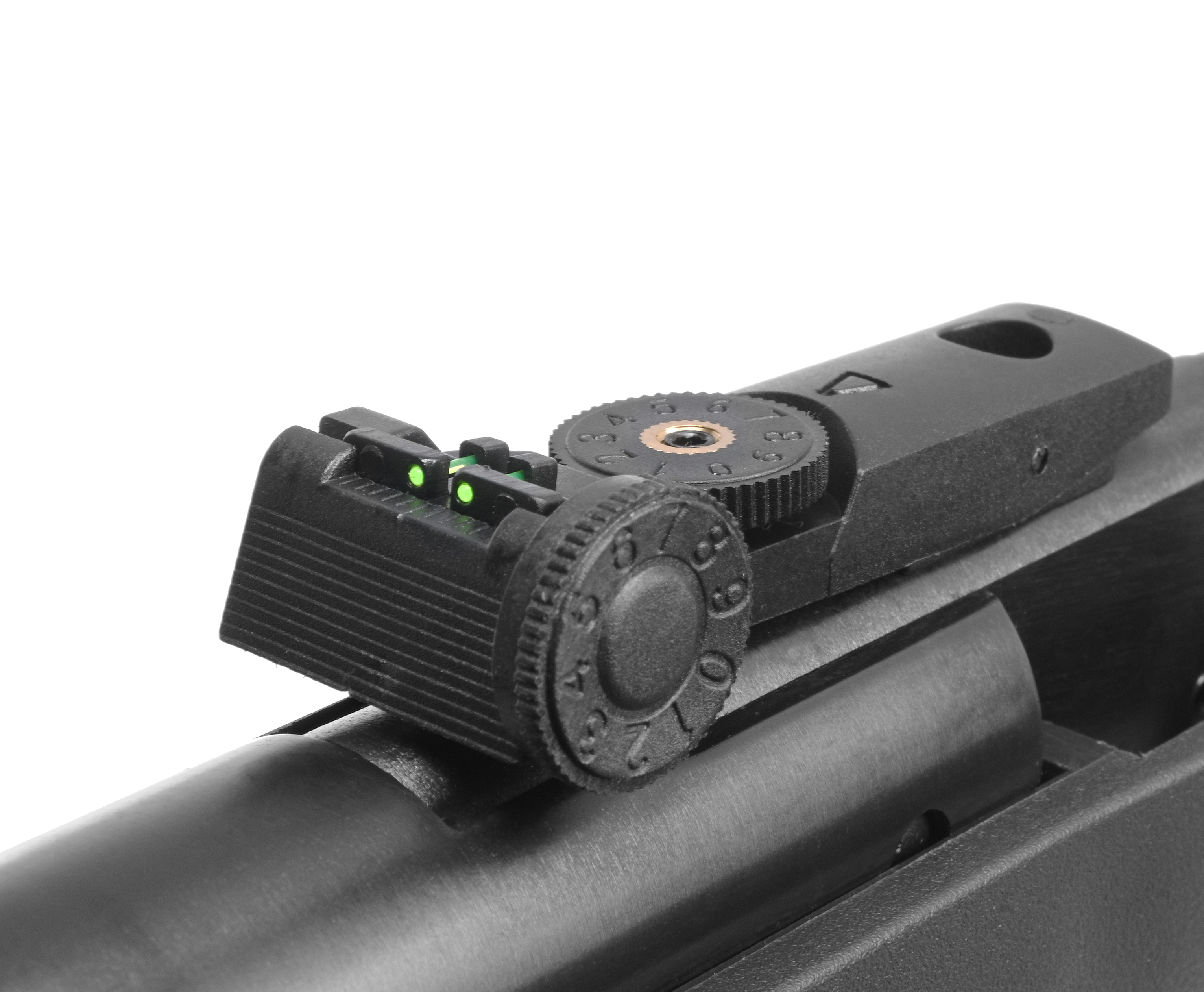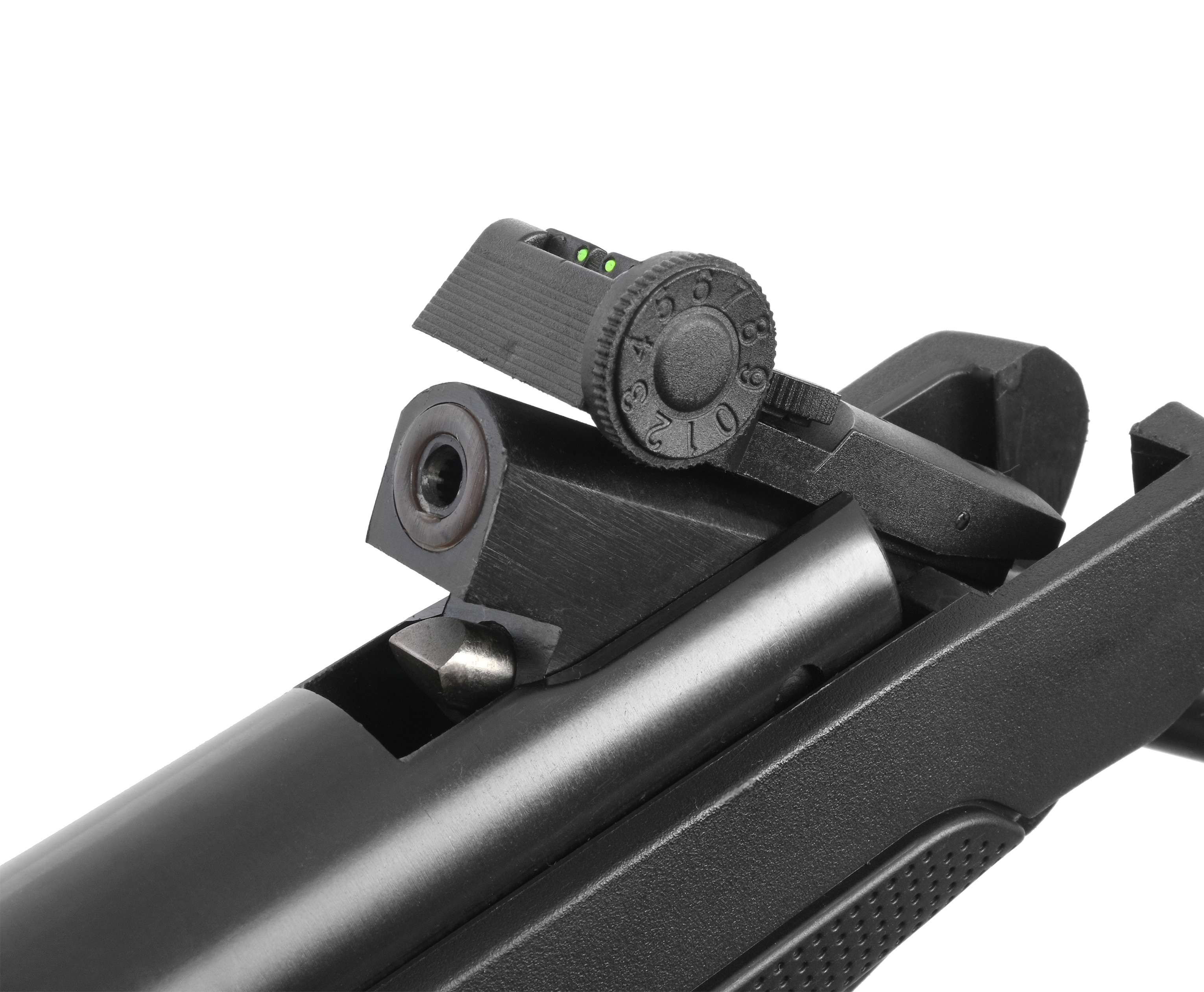 Она совмещена с мушкой, тогда как у основания бланка присутствует регулируемый целик. Кроме механических приспособлений, конструкция ППП винтовки подразумевает дооснащение оптикой. Указанный прибор также поставляется совместно с пневматикой и монтируется при помощи колец на планку «Ластохвост».
