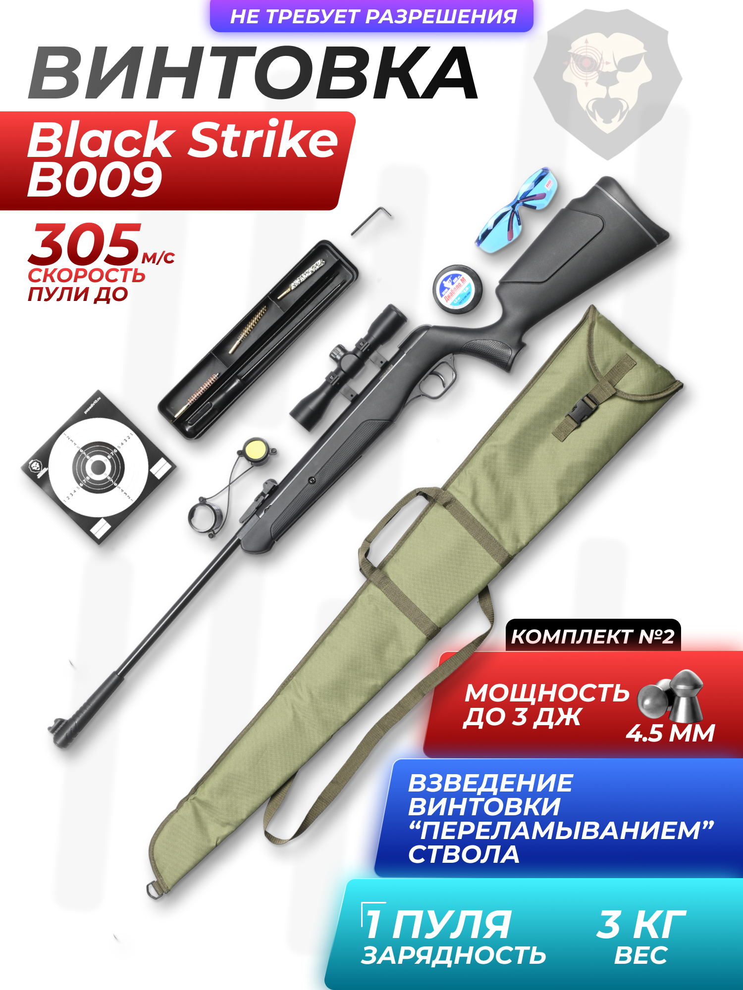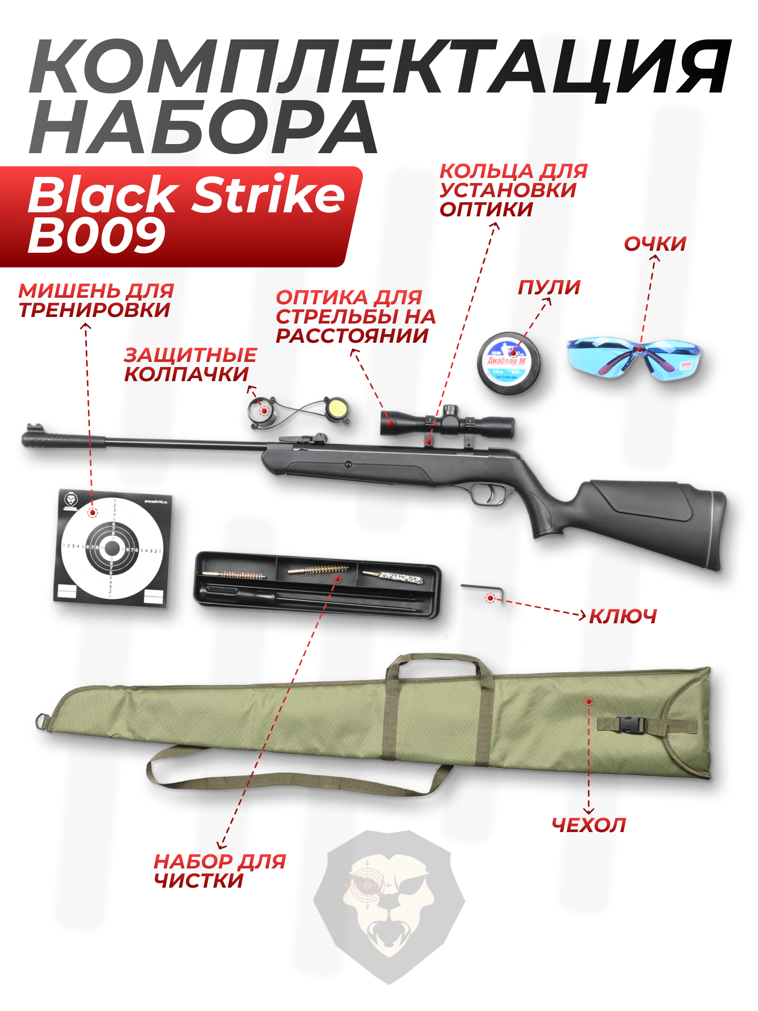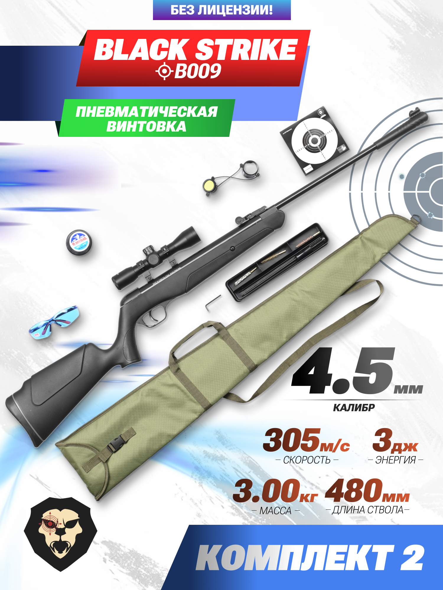 Пневматическая винтовка Black Strike B009 4.5 мм подарочный набор Hunter №2 (прицел, кольца, чехол, очки, набор для чистки, мишени, пули) купить в интернет-магазине Popadiv10.