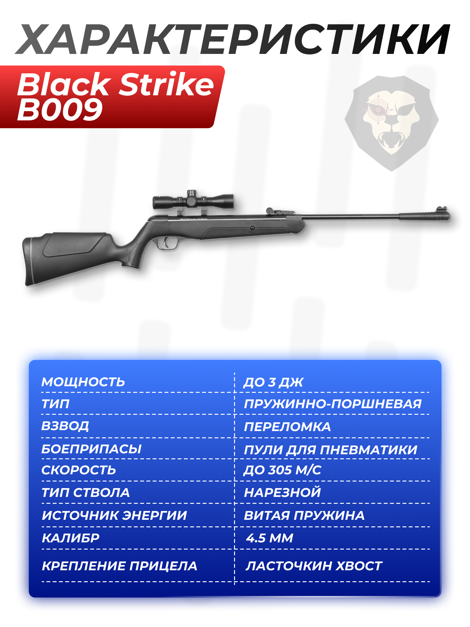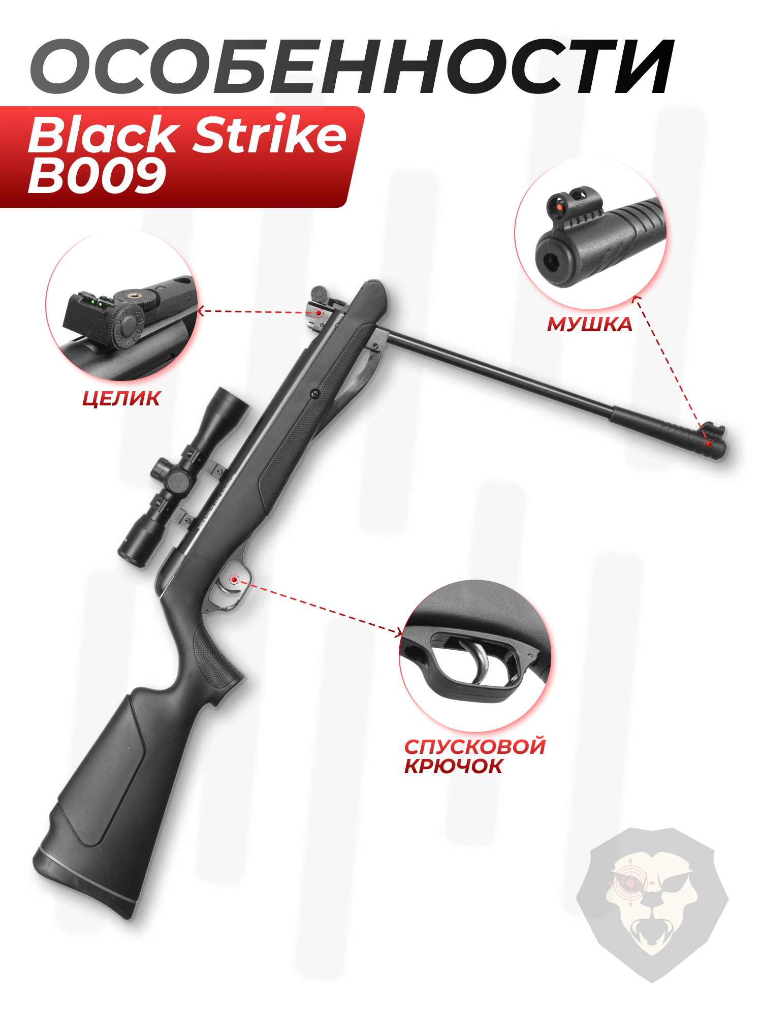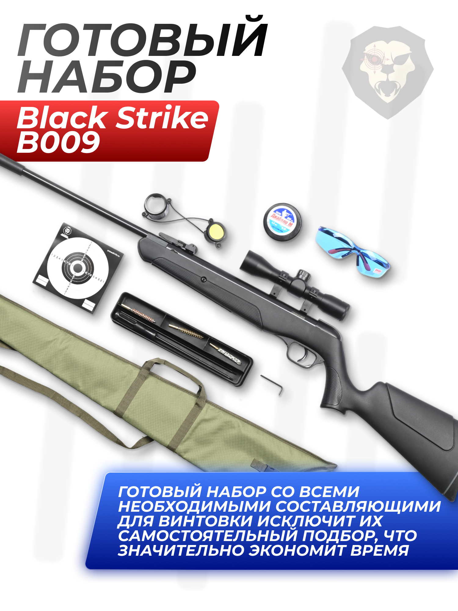 Пневматическая винтовка Black Strike B009 4.5 мм подарочный набор Hunter №2 (прицел, кольца, чехол, очки, набор для чистки, мишени, пули) купить в интернет-магазине Popadiv10.