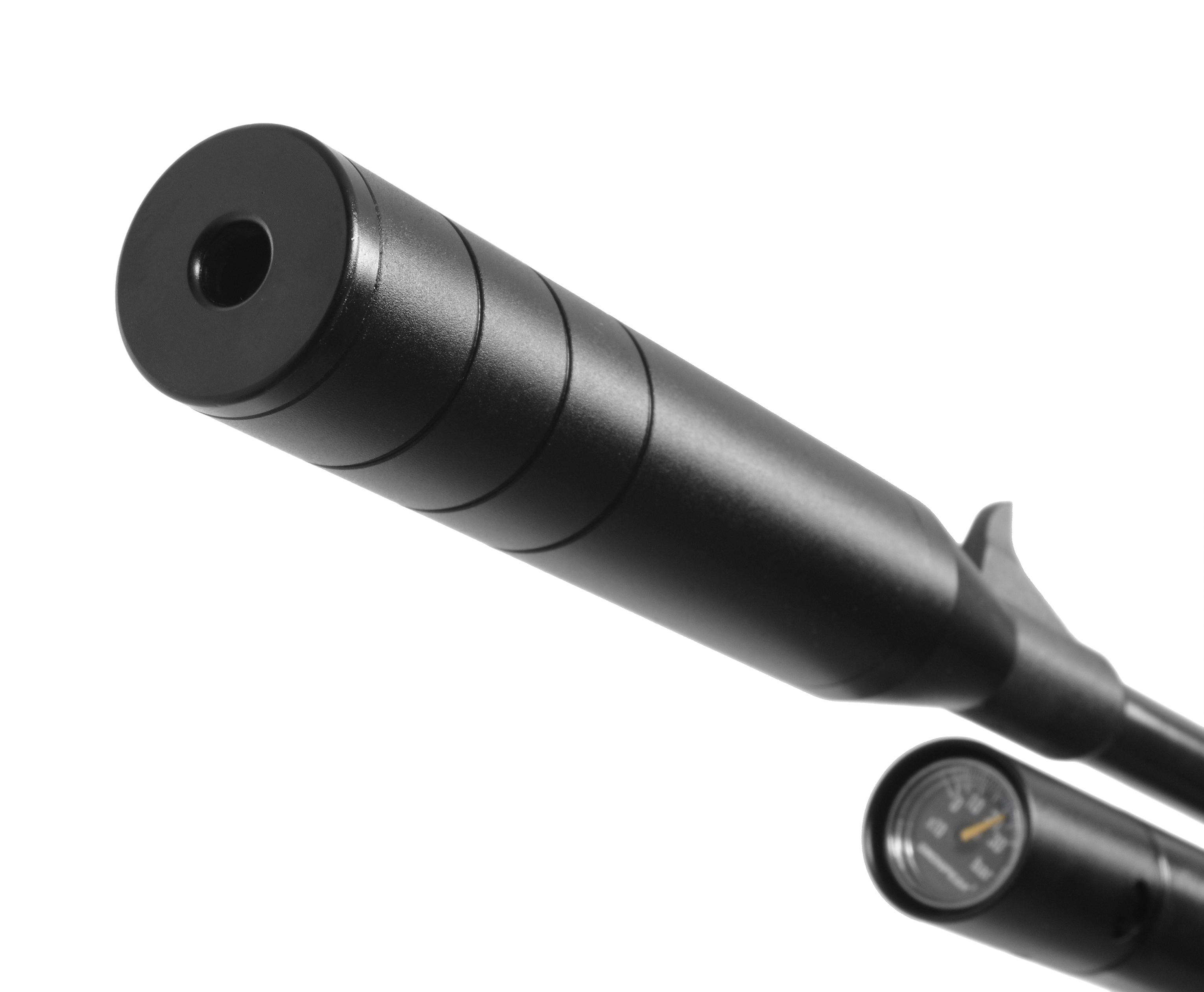 Образец снабдили стволом увеличенной длины 480 миллиметров. Нарезной бланк способствует высокой кучности, при этом выстрел будет почти бесшумным за счет наличия саундмодератора, который предустанавливается на дульный срез с завода. Исходя из внутреннего сечения, пневматика заряжается пулями .177 калибра.