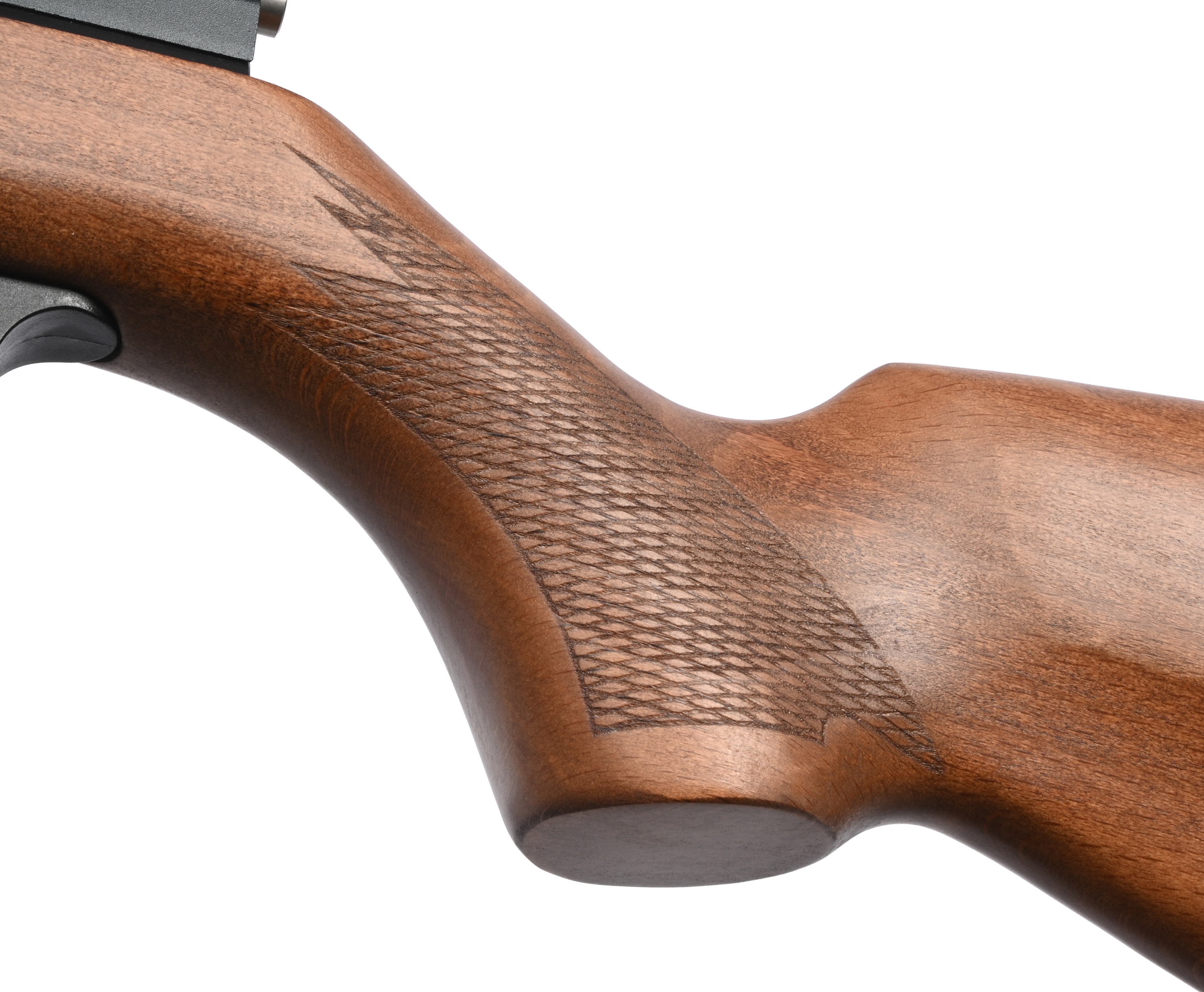 Модель B022 имеет стандартные приспособления для наведения в виде мушки и целика, однако наличие планки «Ласточкин хвост» предрасполагает к дооснащению оптикой, которая идет совместно с пневматикой. Эргономичная деревянная ложа создает условия для комфортной вкладки и вдобавок придает оружию привлекательный внешний вид.