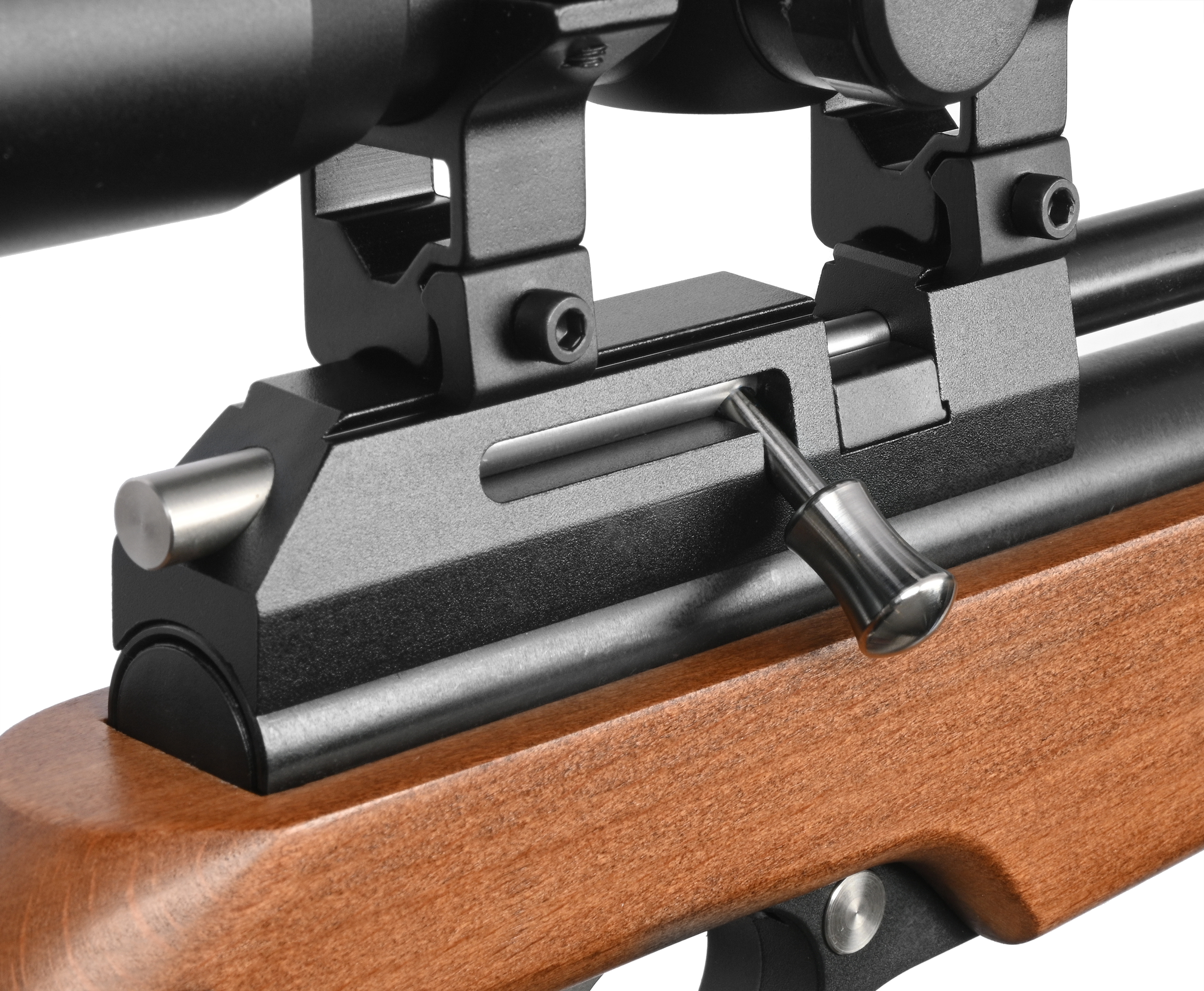 Так как модель входит в линейку устройств с предварительной накачкой ресивера, необходим компрессор. Его не придется докупать отдельно - компактный и производительный ручной насос ВД справится с задачей даже в полевых условиях. Он подключается к разъему на корпусе линейного резервуара на 100 куб. см при помощи штуцера.