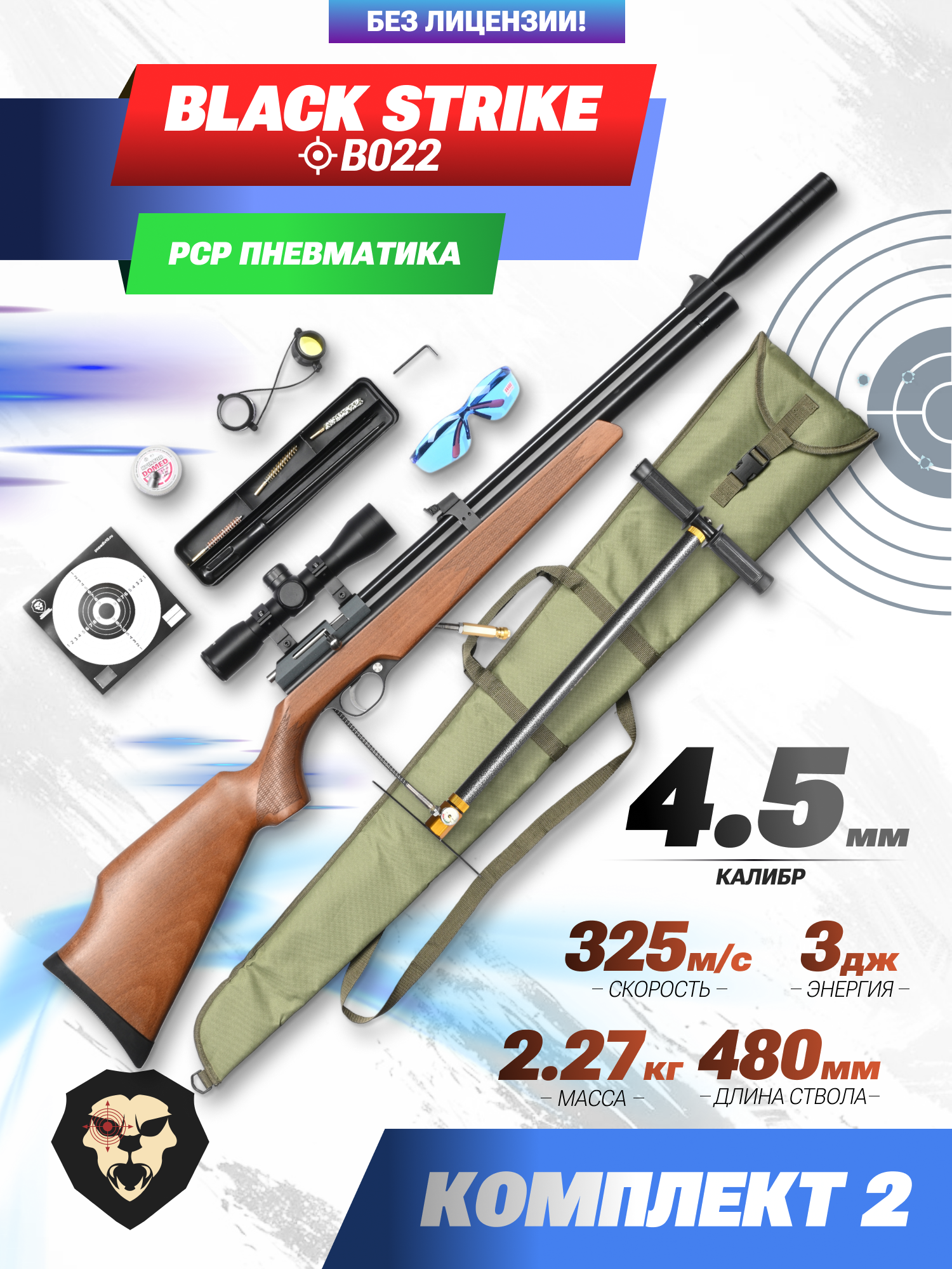 Пневматическая винтовка Black Strike B022 4.5 мм комплект Hunter №2 подарочный (насос, чехол, очки, прицел, кольца, модератор, набор для чистки, мишени, пули) купить в интернет-магазине Popadiv10.