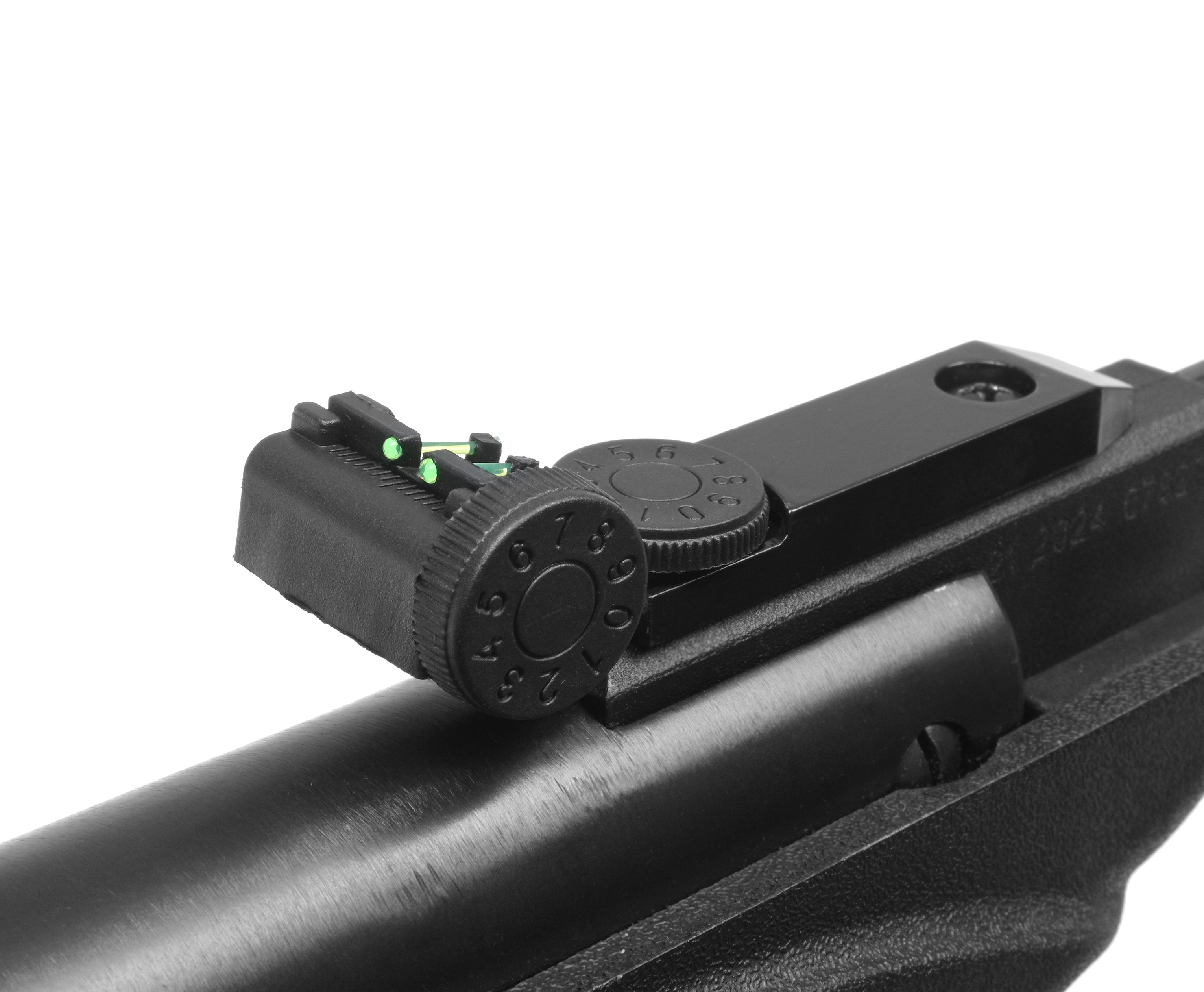 Под навесное оборудование предусмотрена направляющая «Ласточкин хвост» 11 мм. Кроме этого, Блэк Страйк В031 оснащается стандартными механическими прицельными приспособлениями в виде целика и мушки. Благодаря светоотражающим вставкам из фибергласса элементы будут хорошо различимы даже в условиях с недостаточной видимостью.