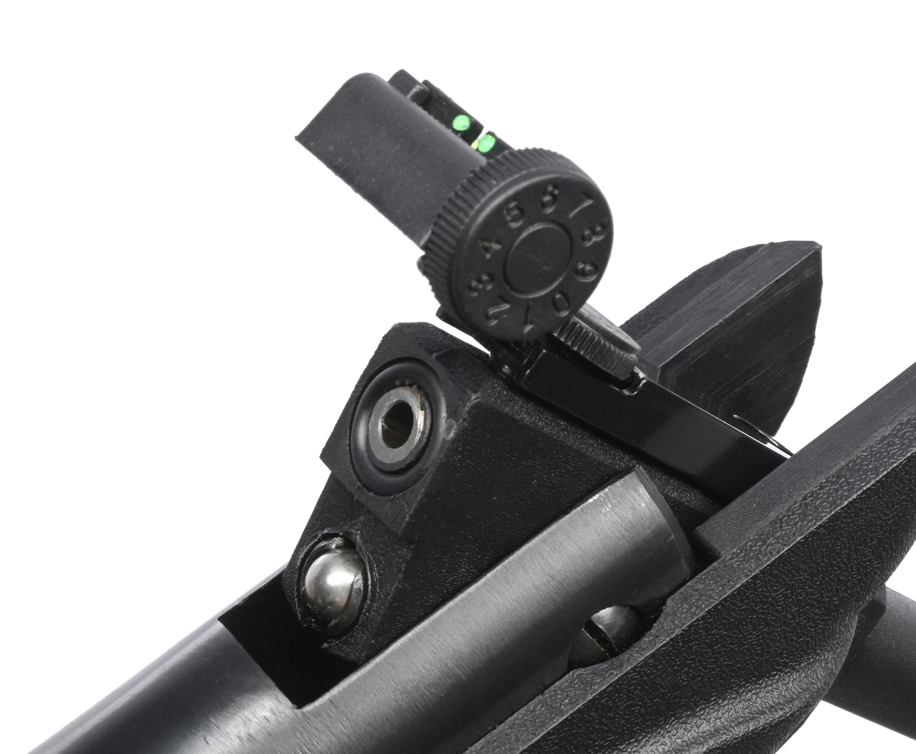 По умолчанию за наведение на мишень отвечают механические приспособления. При этом вместо целика и мушки можно задействовать комплектную оптику. Навесное оборудование фиксируется посредством колец на посадочную планку «Ласточкин хвост».