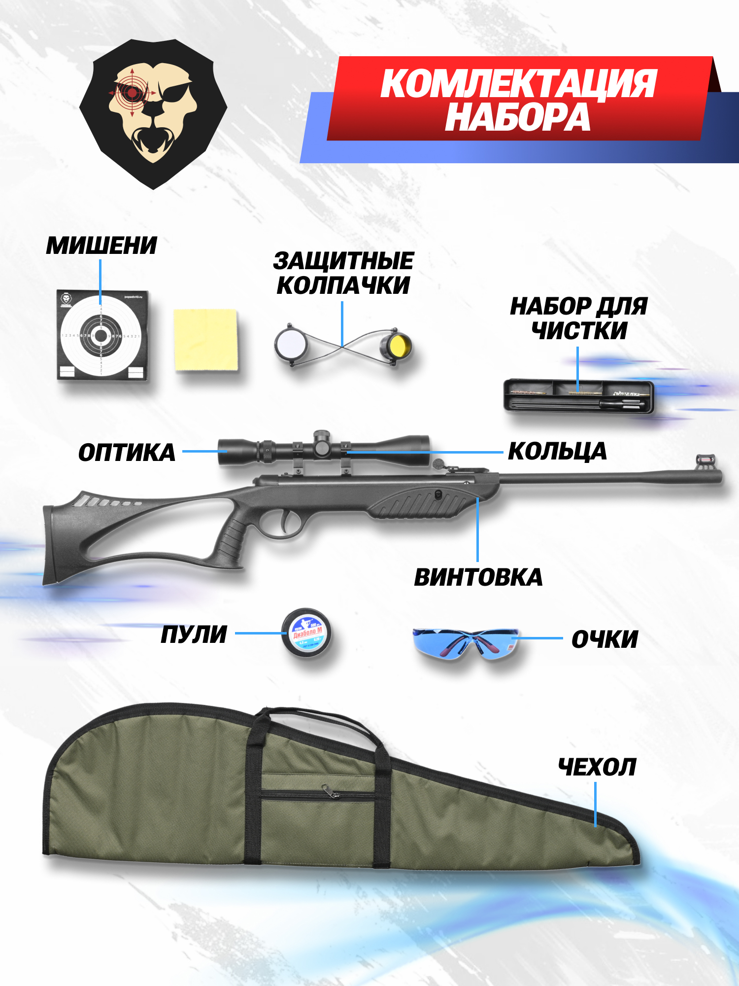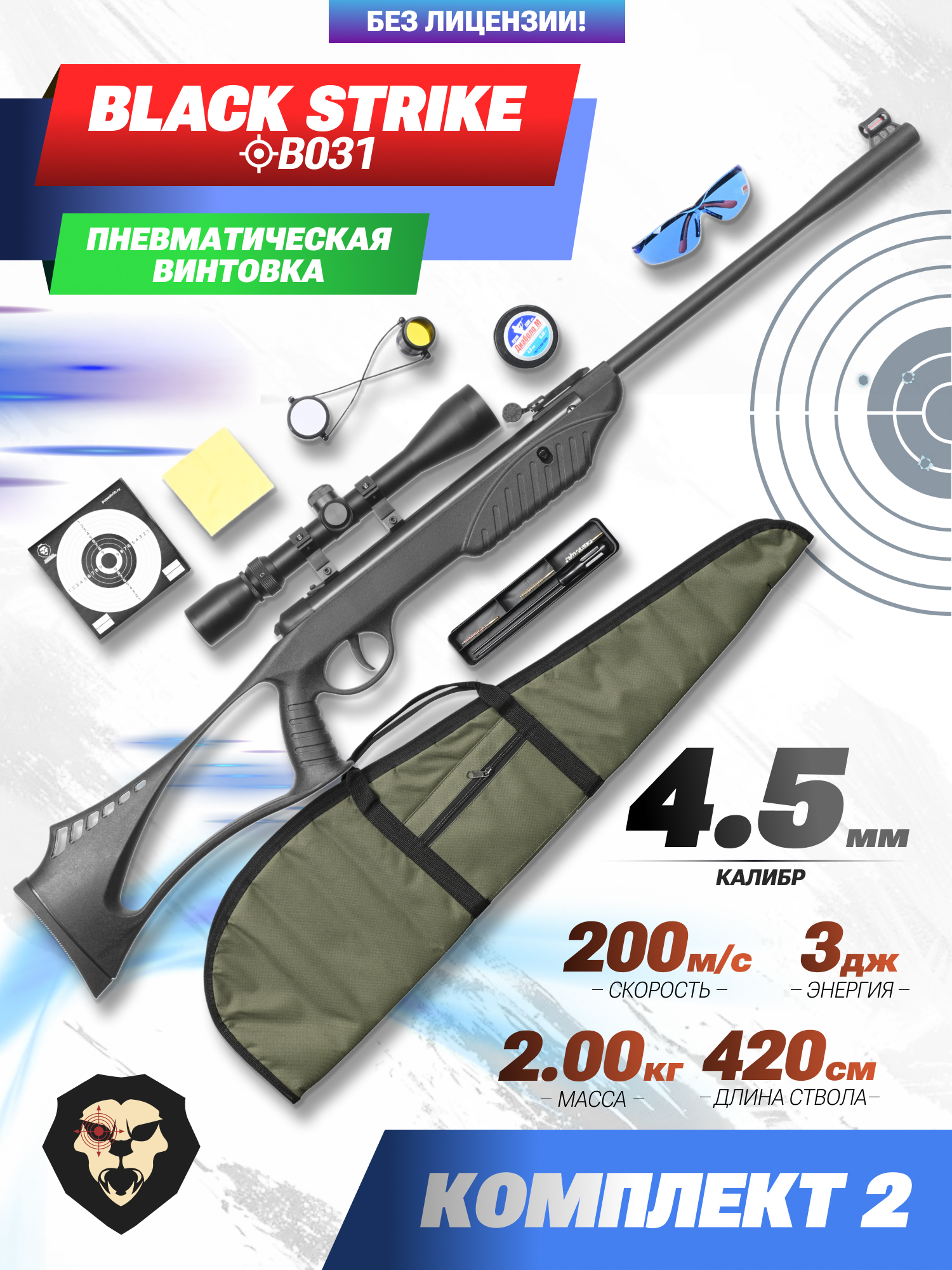 Пневматическая винтовка Black Strike B031 4.5 мм комплект Hunter №2 подарочный (прицел, кольца, очки, чехол, набор для чистки, мишени, пули) купить в интернет-магазине Popadiv10.