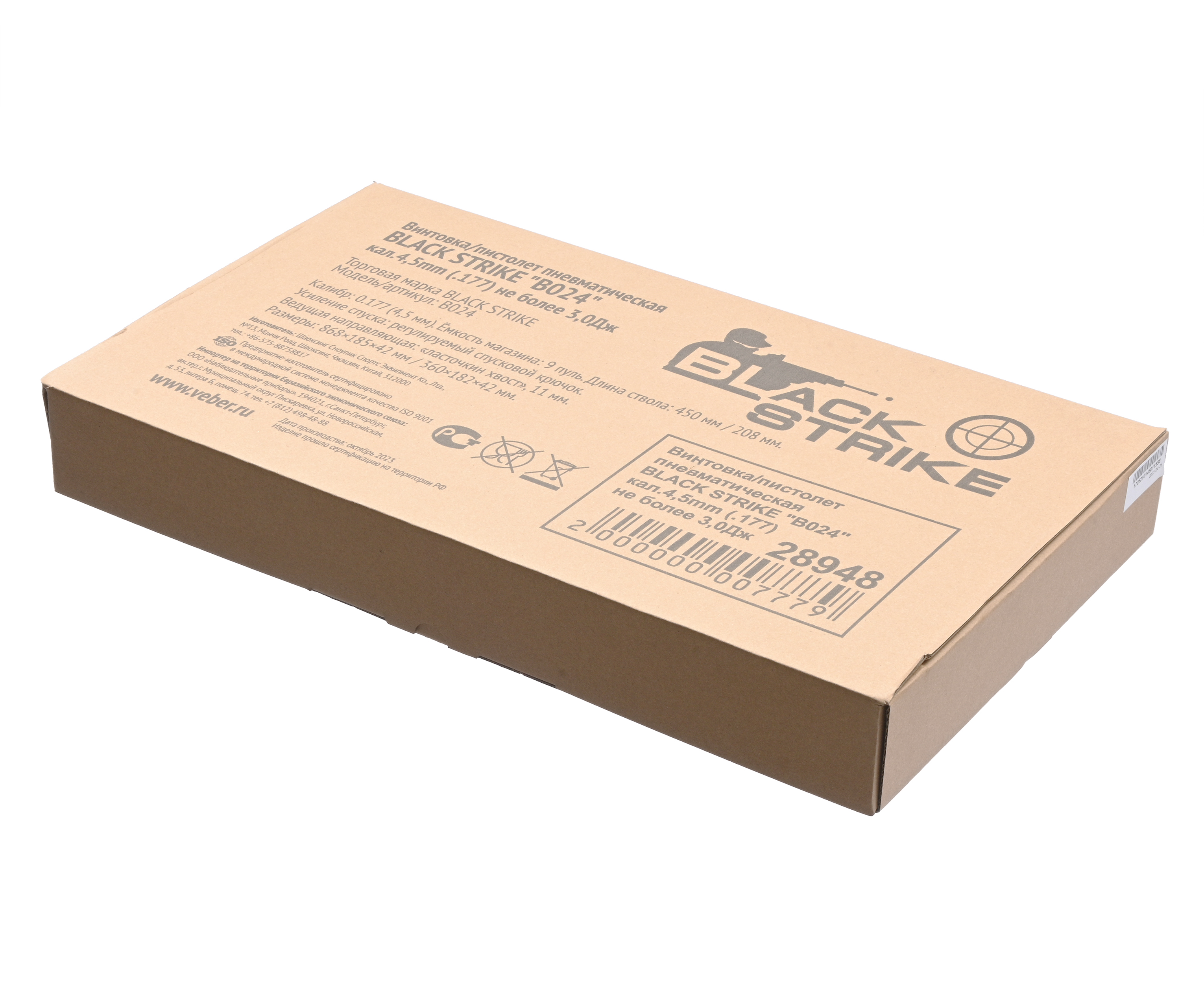 Артикул производителя Пневматическая винтовка Black Strike B024 4.5 мм (два ствола, съемный приклад) по низкой цене 14790 руб. Модель со штрихкодом производителя Вы можете оплатить наложенным платежем с доставкой или в отделении транспортной компании (ПЭК, СДЭК, Boxberry). Ваш заказ со штрихкодом 2000000108025 забрать на почте с оплатой при получении в любой части Российской Федерации.