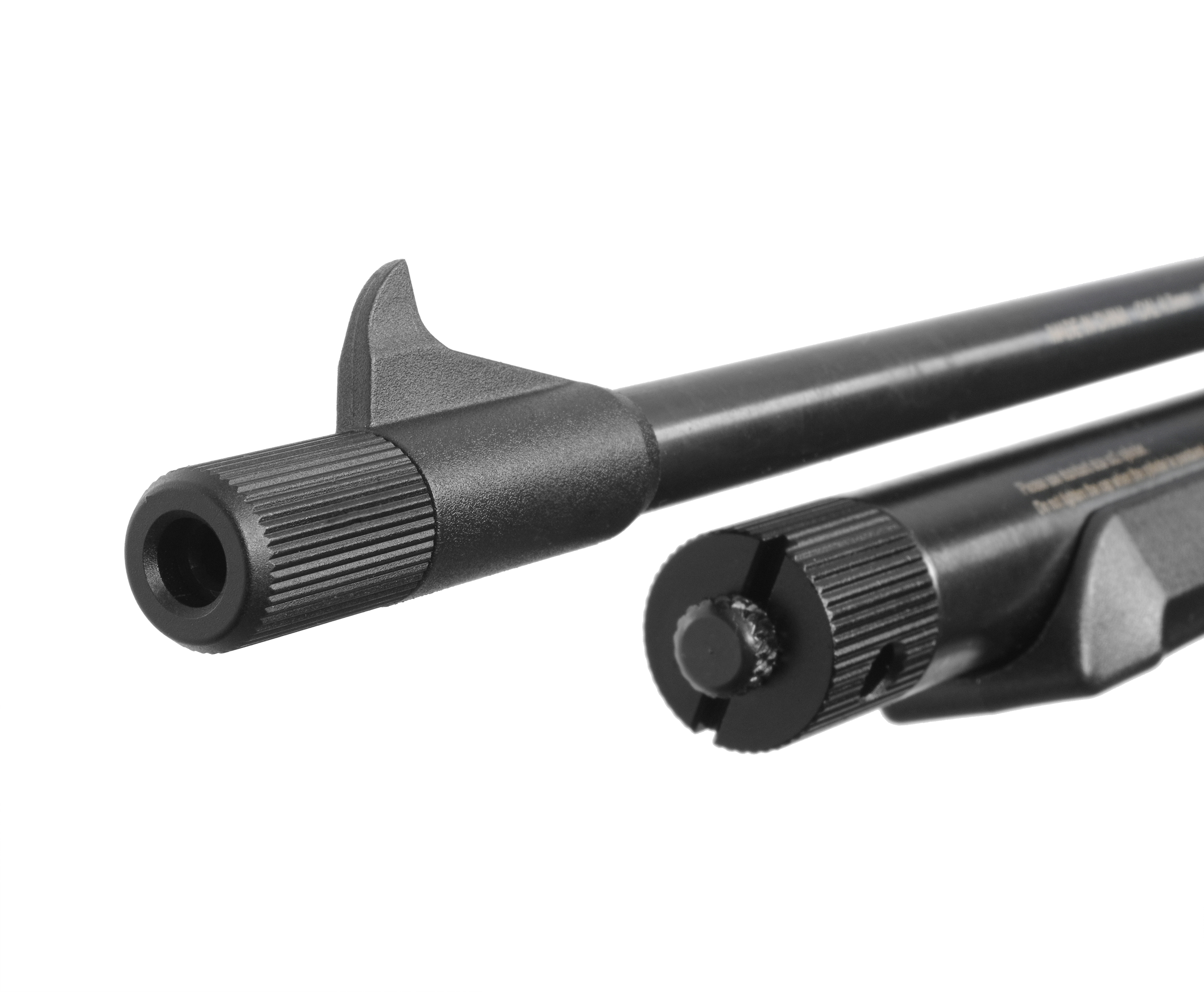У среза каждого из бланков присутствует защитная гайка, под которой расположилась резьба для модератора. Аксессуар не придется докупать - устройство понижения звука доложили в базовый набор.