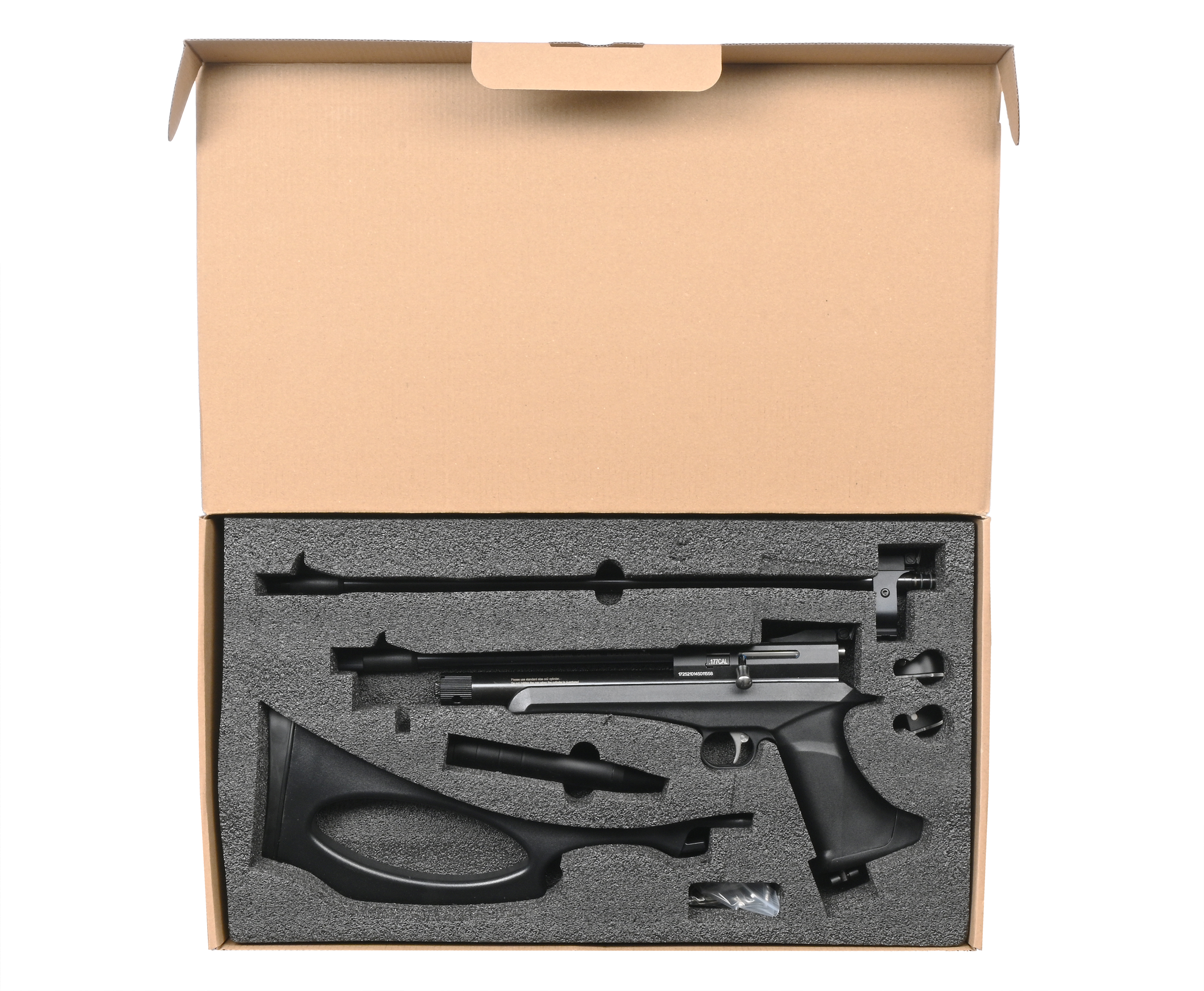 Заводская комплектация подразумевает наличие двух стволов. Короткий 208 миллиметровый бланк предназначен для сборки пистолетного исполнения. Версия длинной 450 мм позволит получить винтовку.