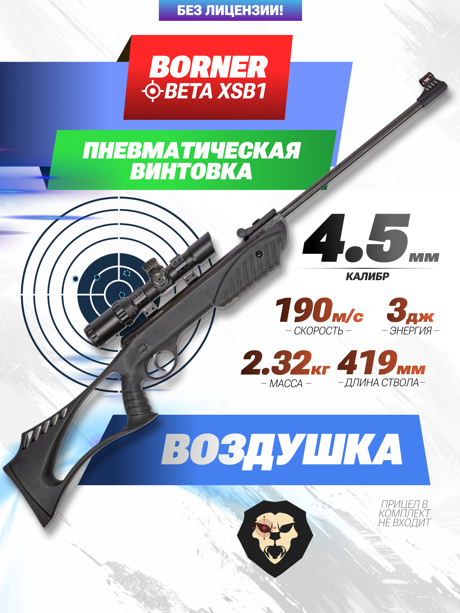 Пневматическая винтовка Borner Beta XSB1 4.5 мм (3 Дж, пластик) купить в интернет-магазине Popadiv10.