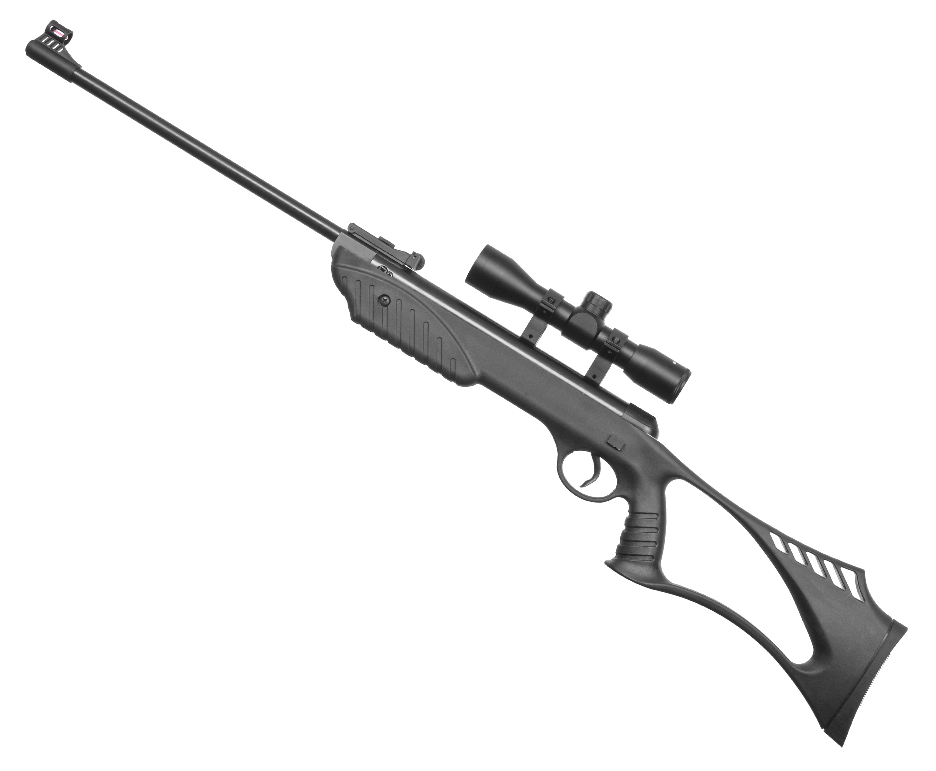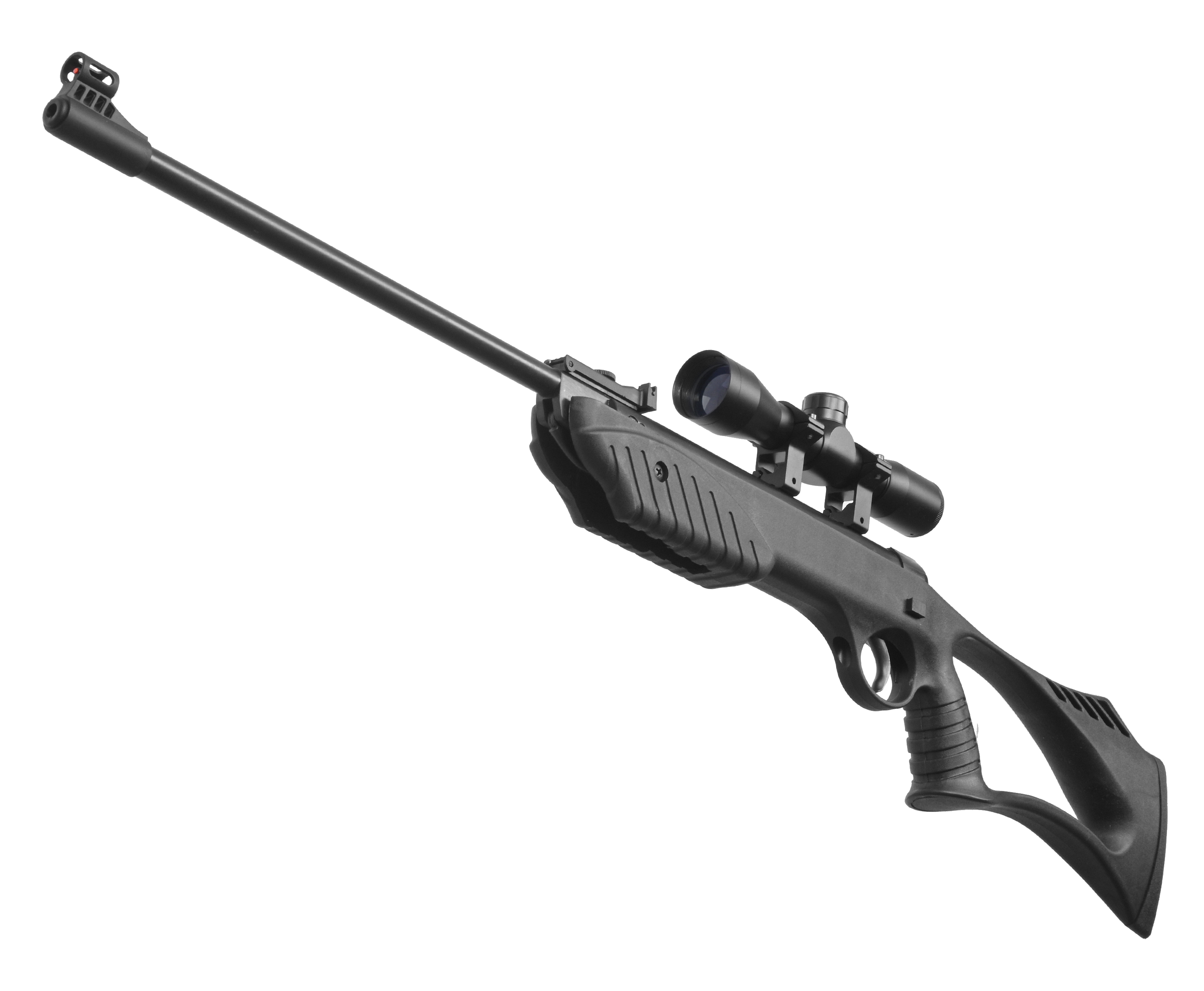 В результате описанных манипуляций также сжимается боевая витая пружина. Она распрямляется при взаимодействии со спусковым крючком и толкает поршень, в результате чего происходит компрессия воздуха. Газ проникает в канал нарезного ствола длиной 419 миллиметров и выталкивает метаемый снаряд.