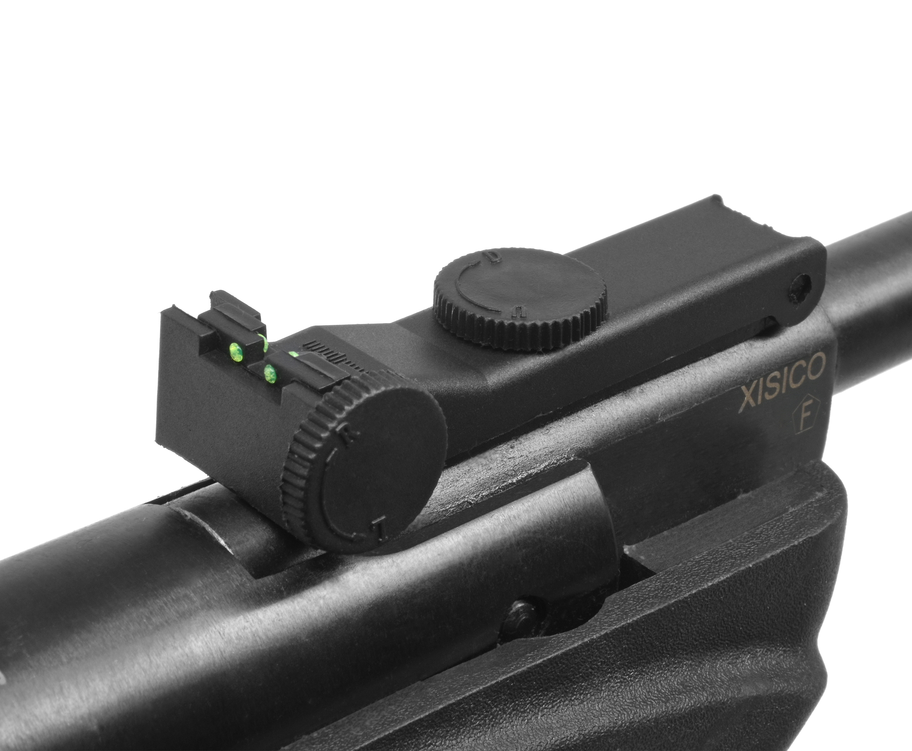 Пневматическая винтовка Borner XSB1 комфортна в обращении, чему способствует эргономичная полимерная ложа с нескользящими ребристыми зонами на рукояти и цевье. Из-за материала фурнитуры конструкция также получила легкий вес в пределах 2.19 кг при общем размере 93 см. Для перевозки до тира пригодится комплектный тканевый чехол.