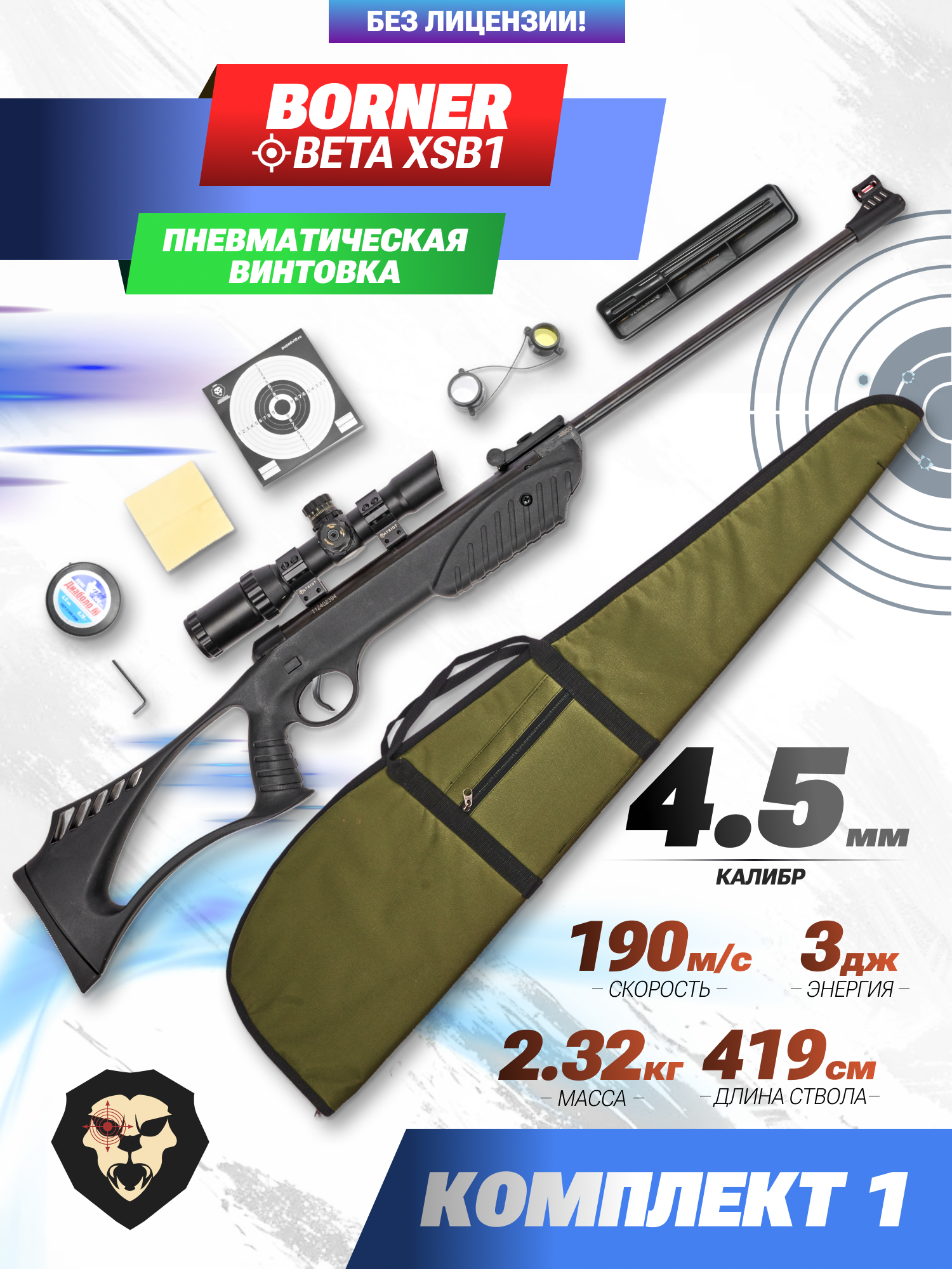 Пневматическая винтовка Borner Beta XSB1 4.5 мм комплект Hunter №1 подарочный (прицел, кольца, чехол, набор для чистки, мишени, пули) купить в интернет-магазине Popadiv10.