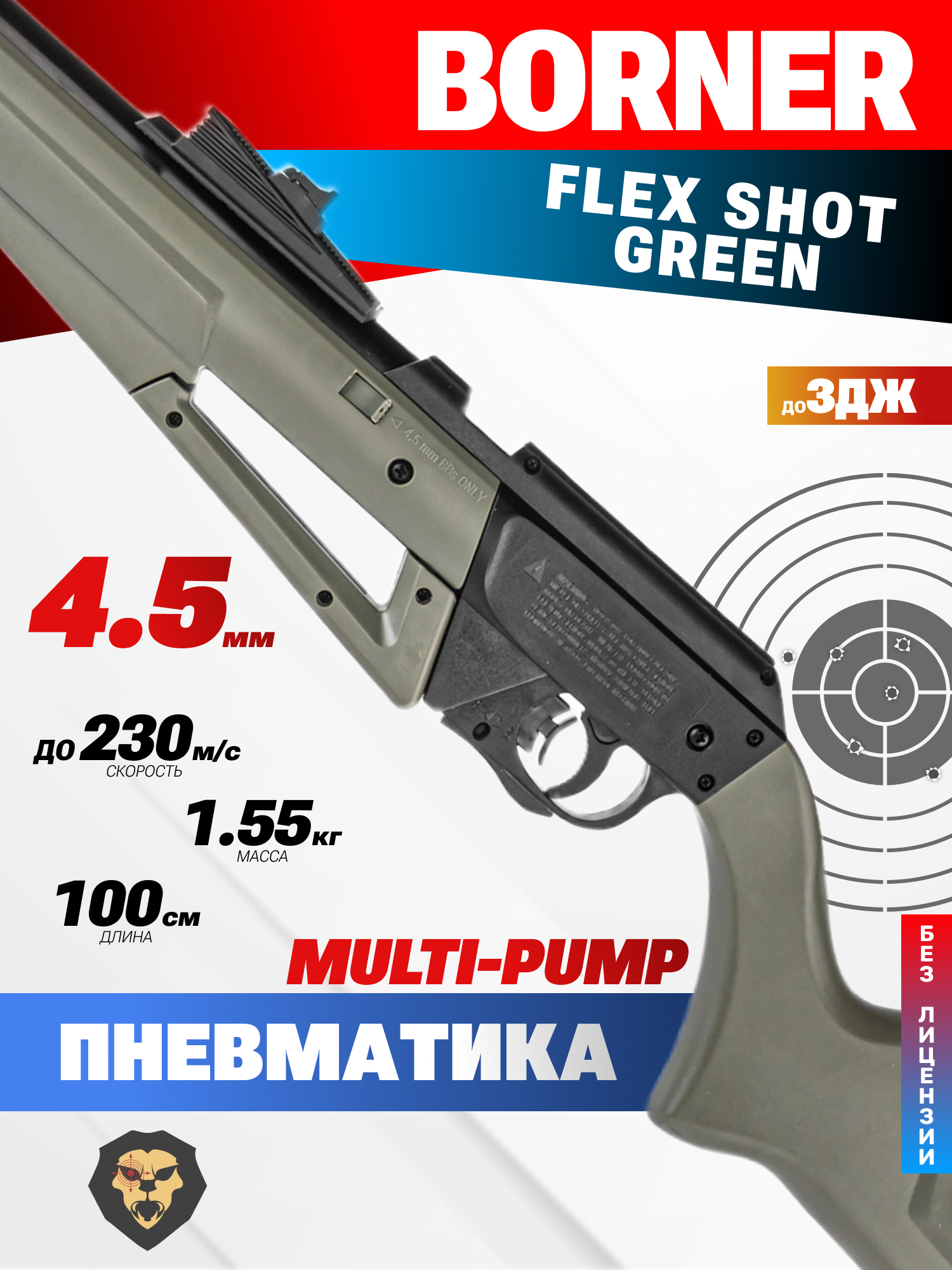 Пневматическая винтовка Borner Flex Shot Green 4.5 мм (3 Дж, зеленый, multi-pump) купить в интернет-магазине Popadiv10.